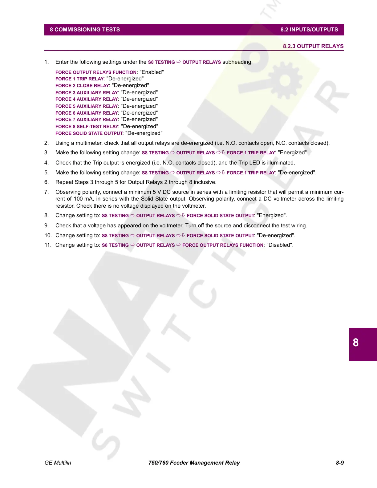 GE Multilin 750/760 Feeder Management Relay 8-9