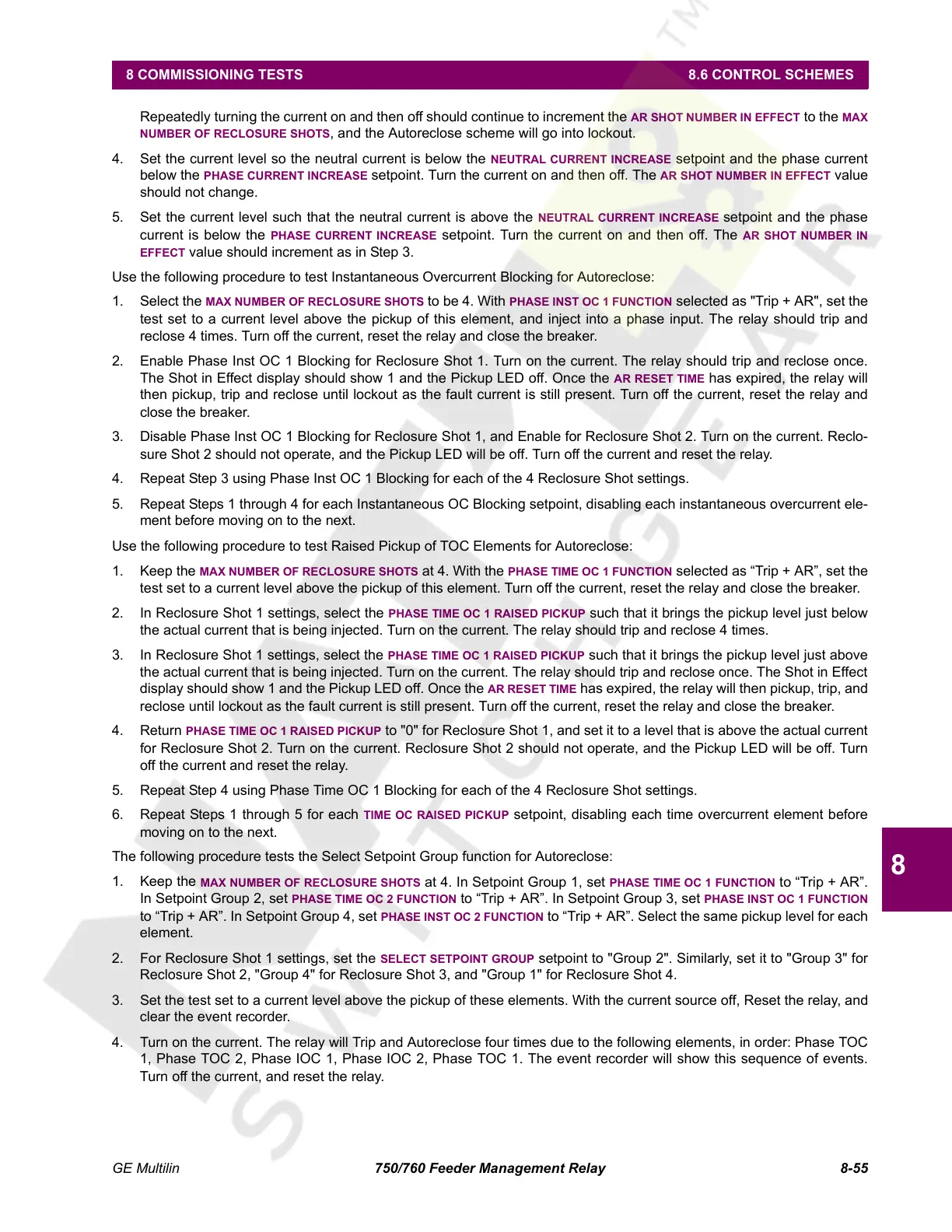 GE Multilin 750/760 Feeder Management Relay 8-55