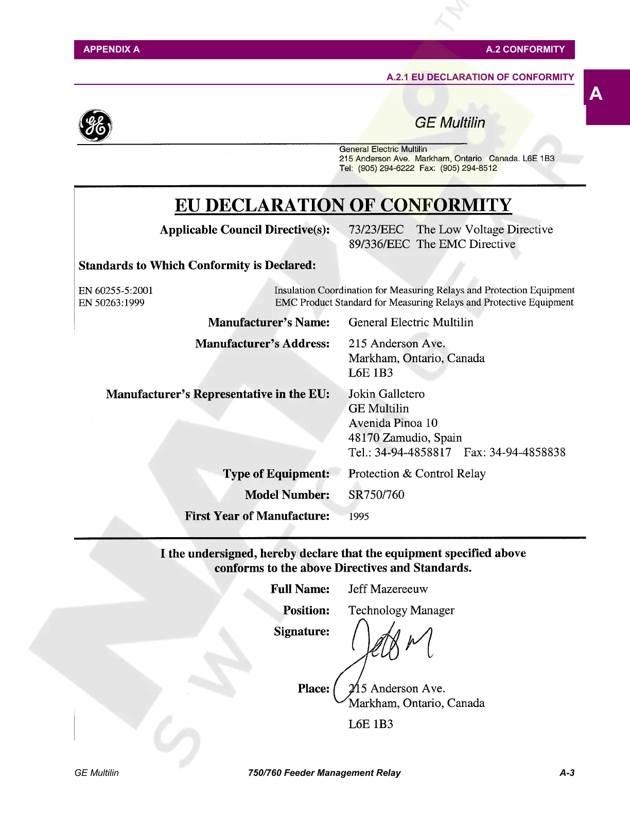 A.2 CONFORMITY A.2.1 EU DECLARATION OF CONFORMITY
