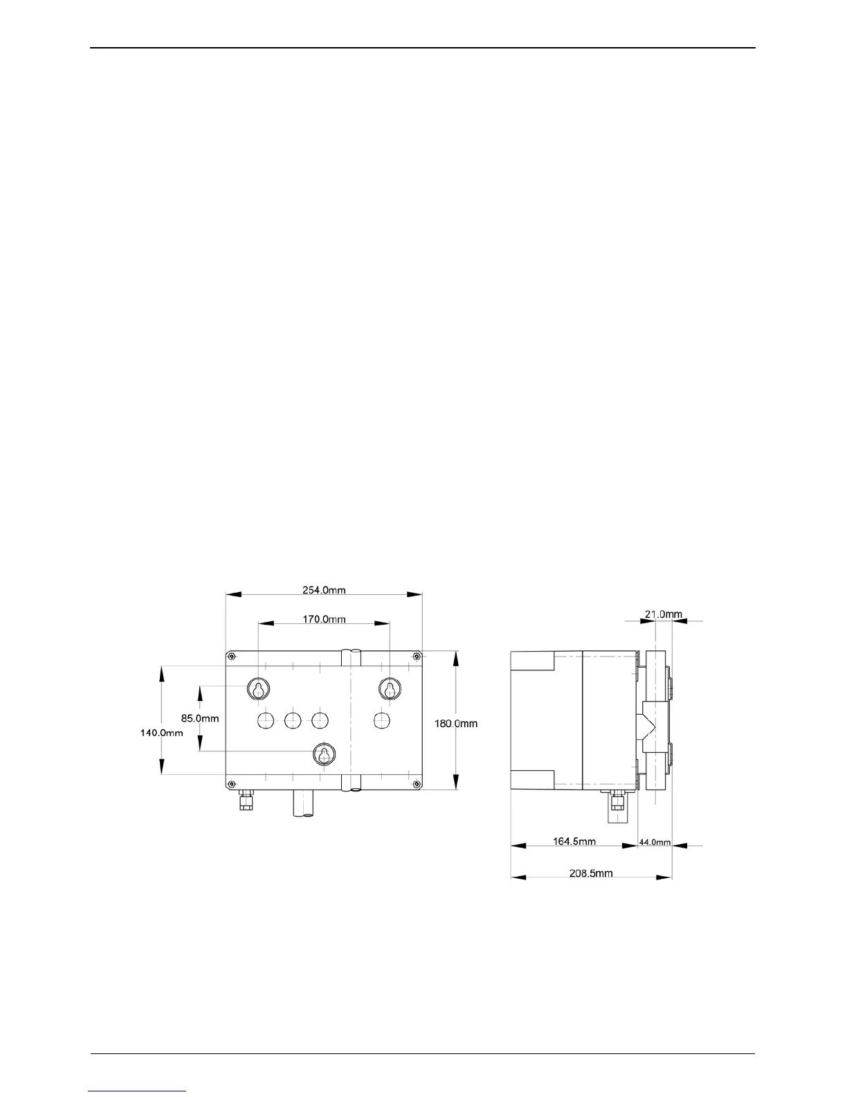 1. Securely mount the back box to a suitable wall or support using the three points shown in the