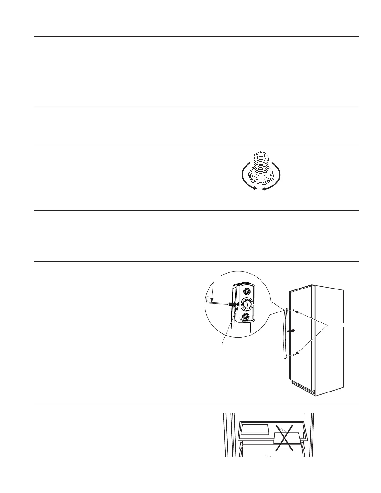 front. Adjust the plastic leveling feet in front 1/2 bubble