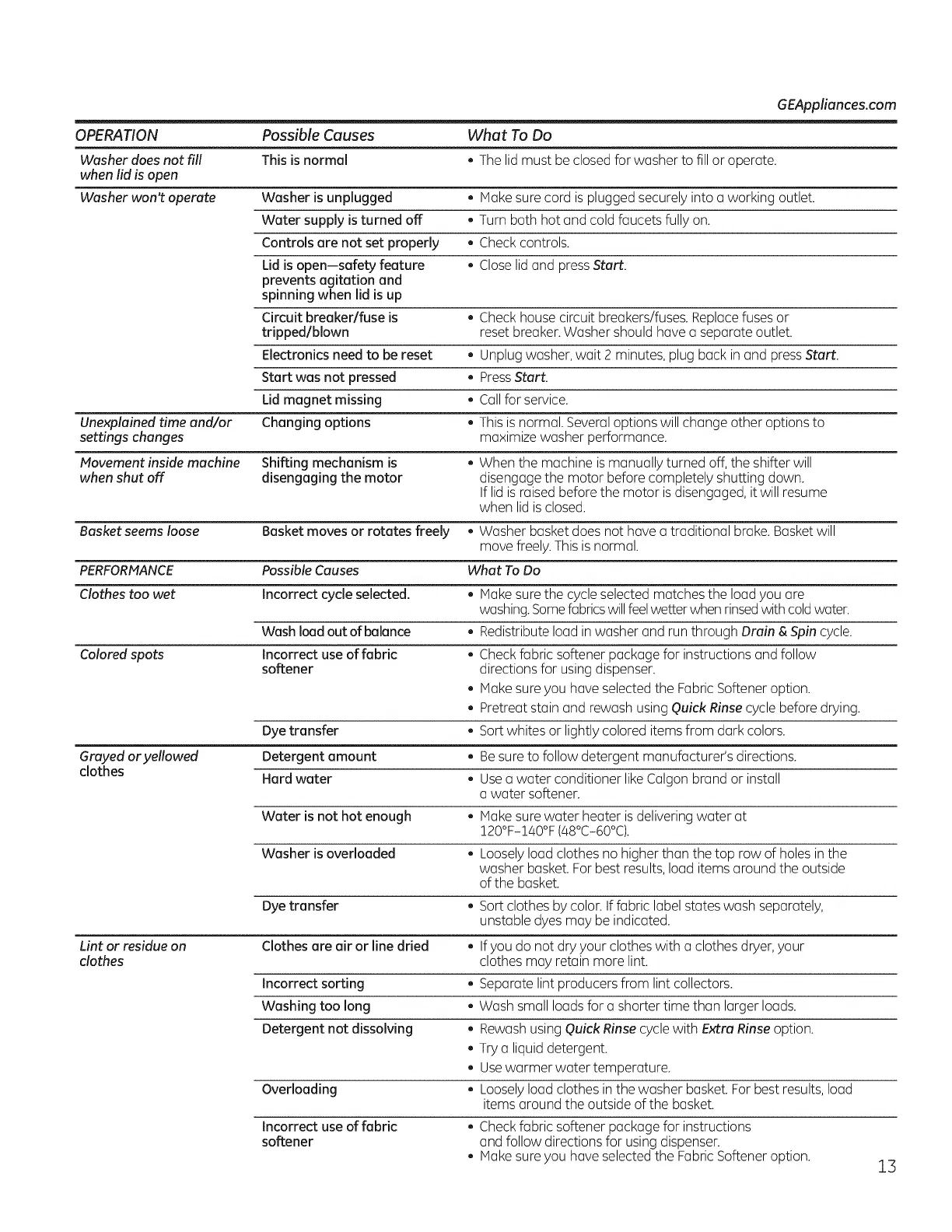 Grayed oryellowed Detergent amount • Be sure to follow detergent manufacturer's directions.