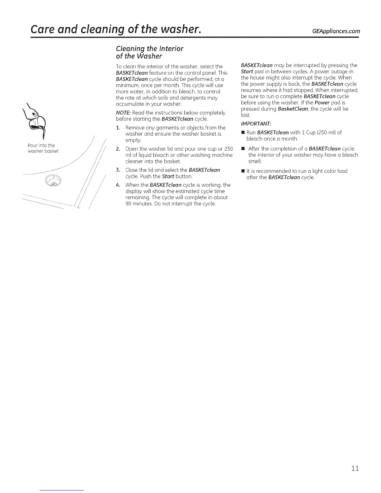 Care and cleaning of the washer. GEAppliances.com
