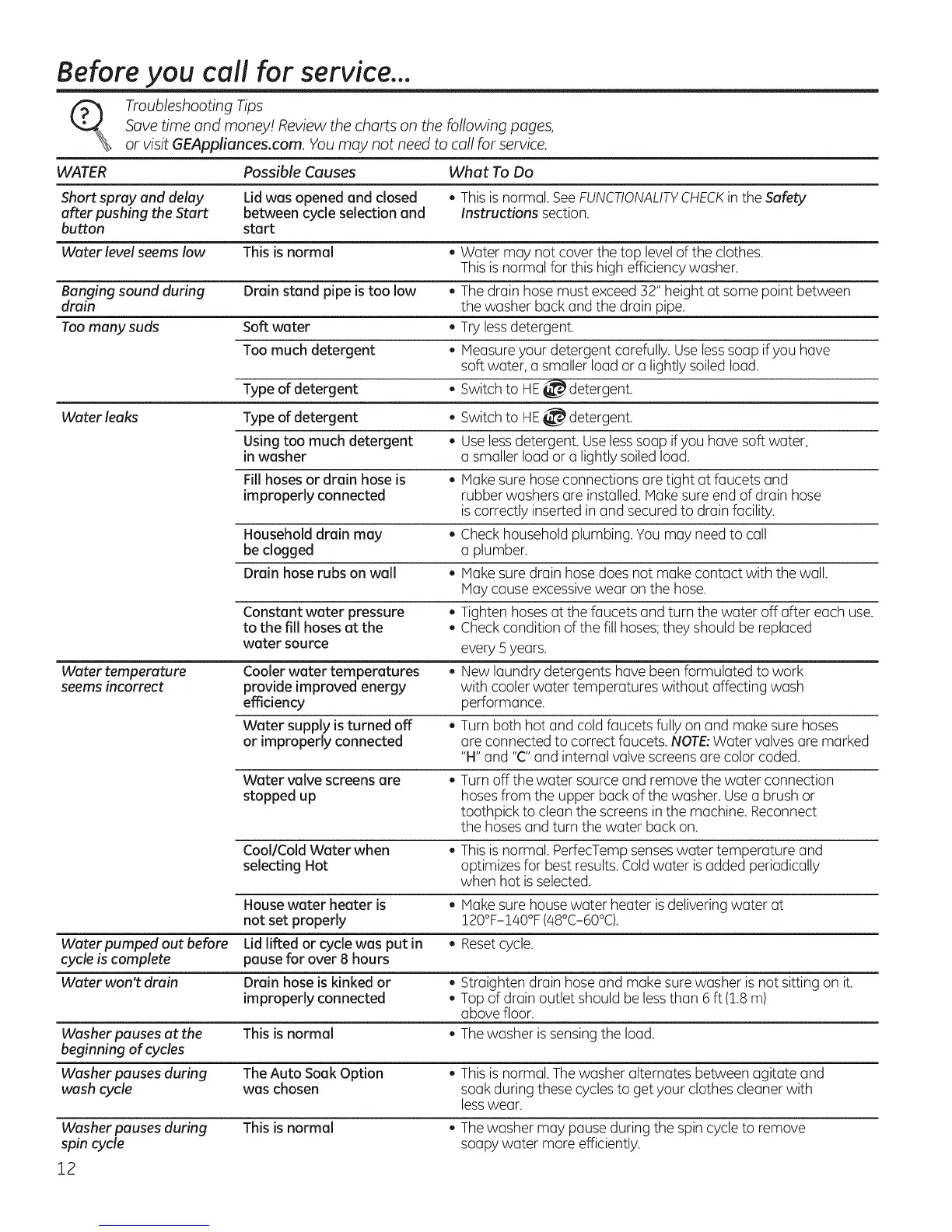 Water leaks Type of detergent • Switchto HE@ detergent.