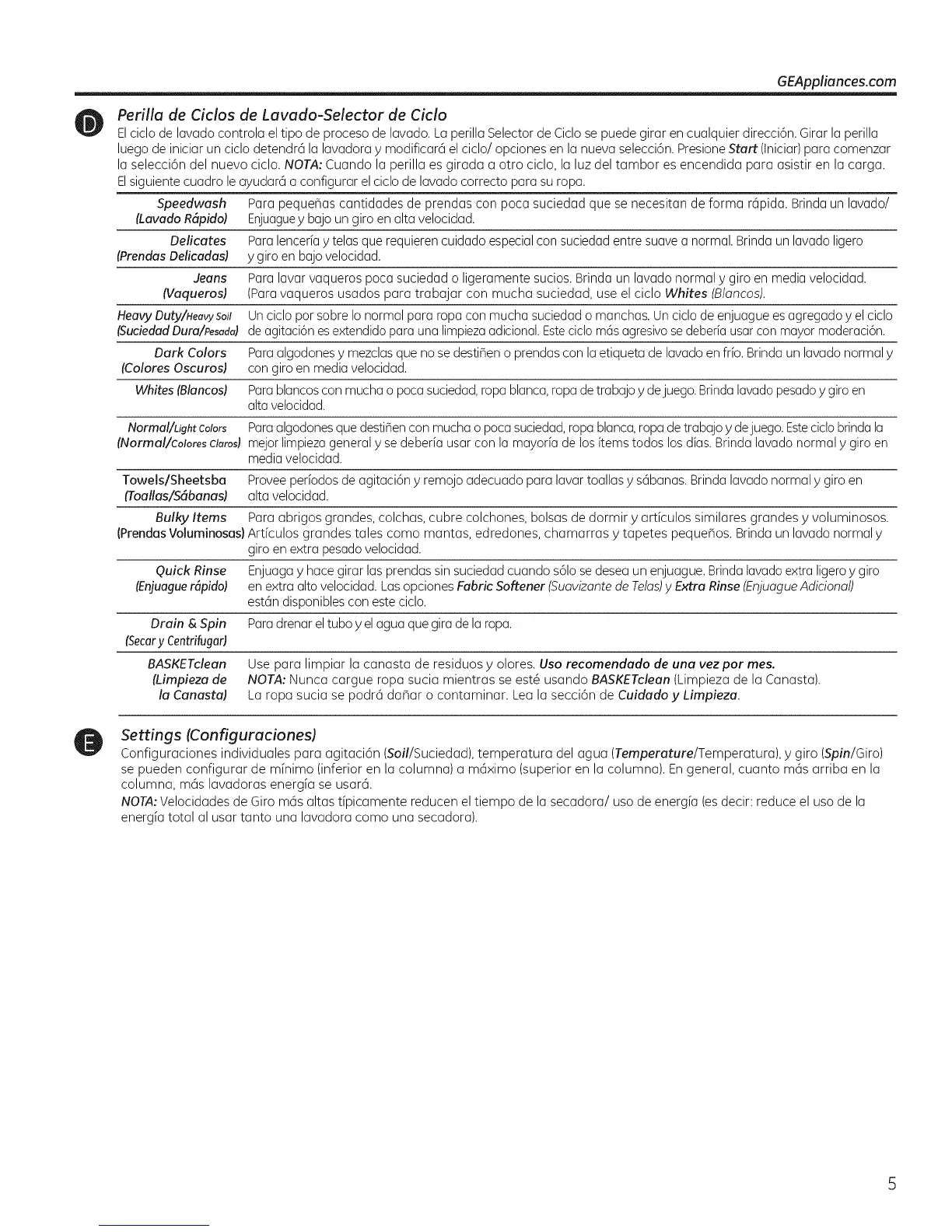 {Lirnpieza de NOTA: Nunca cargue ropa sucia mientras se est6 usando BASKETclean (Limpieza de la Canasta).
