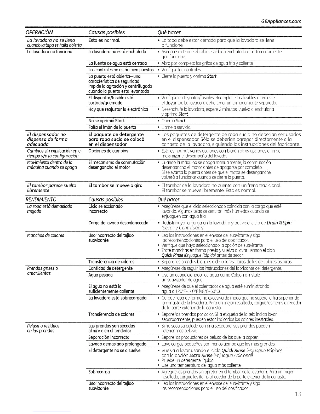 Eldetergentenosedisuelve • Vuelvaa lavar usandoel cicloQuick Rinse(EnjuagueRdpido)