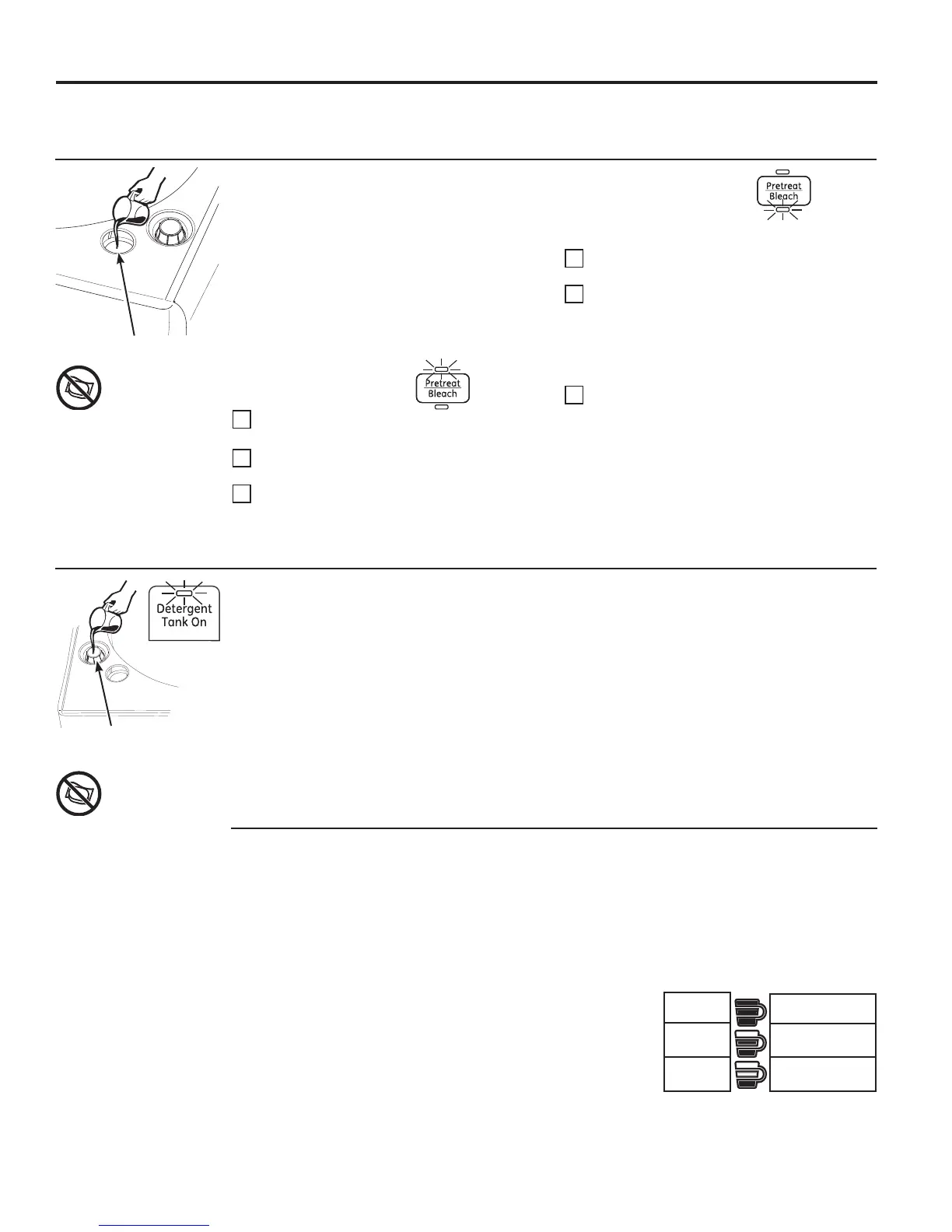 Cup Amount (Cantidad en la Taza de Detergente) configurará el luces (1, 2, o 3) Detergent Cup Amount (Cantidad en
