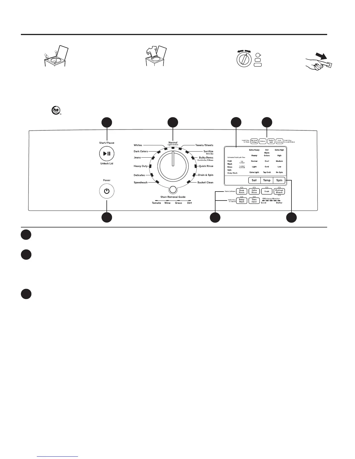 Presione Start (Inicio) para comenzar el ciclo. NOTA: La tapa se deberá cerrar para que la lavadora se llene y el ciclo comience. ISi la tapa está