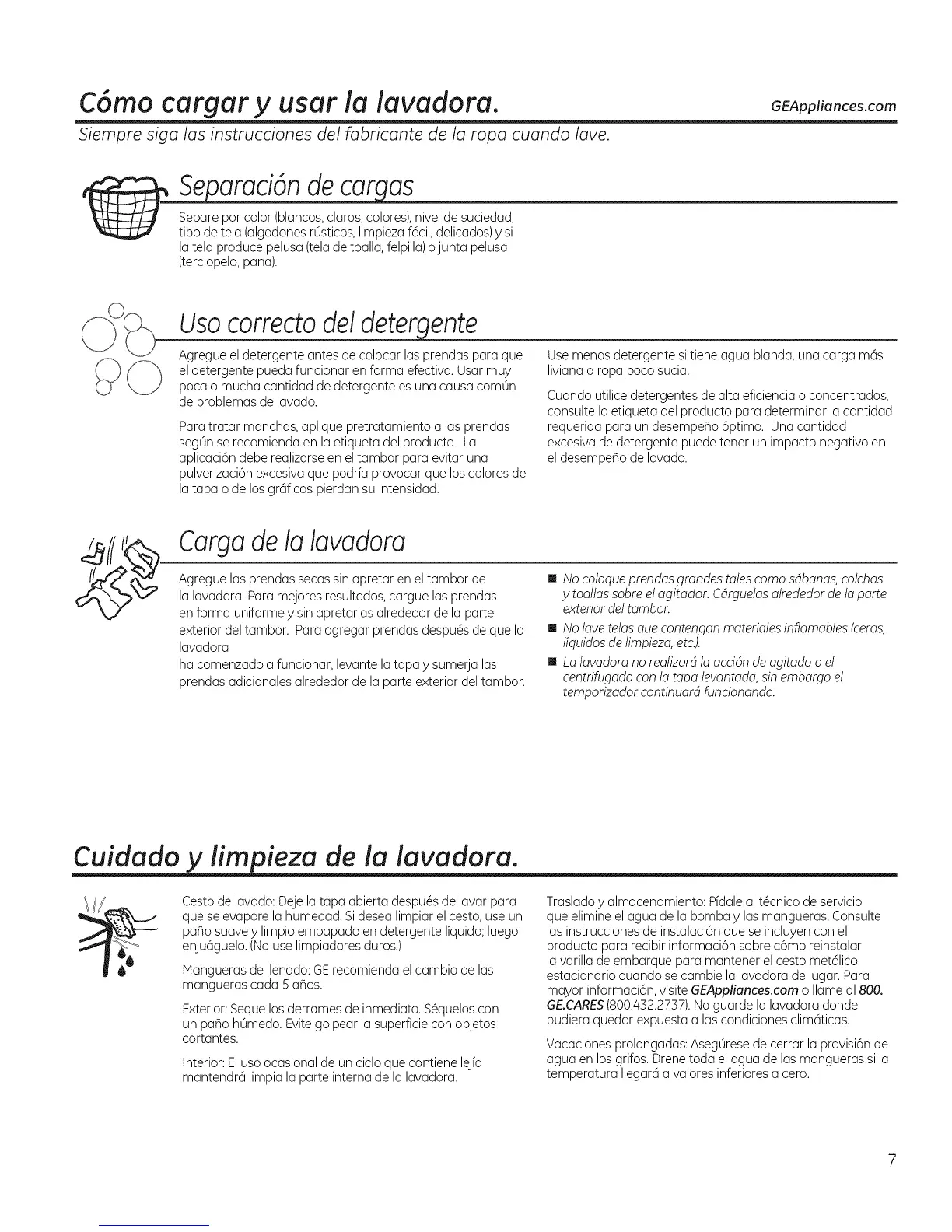 GE.CARES(800.452.2757).No guarde la lavadora donde