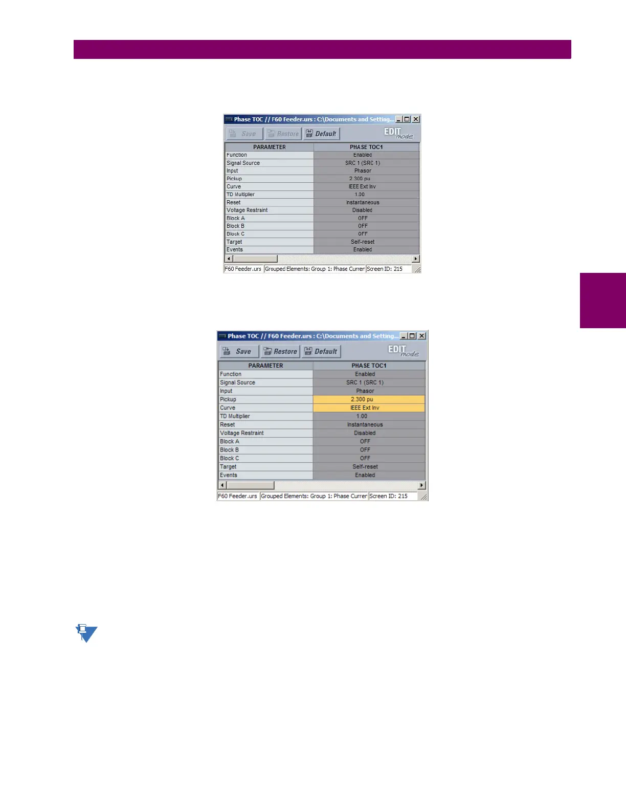 the settings window also indicates that the EnerVista software is in EDIT mode. The following example shows the
