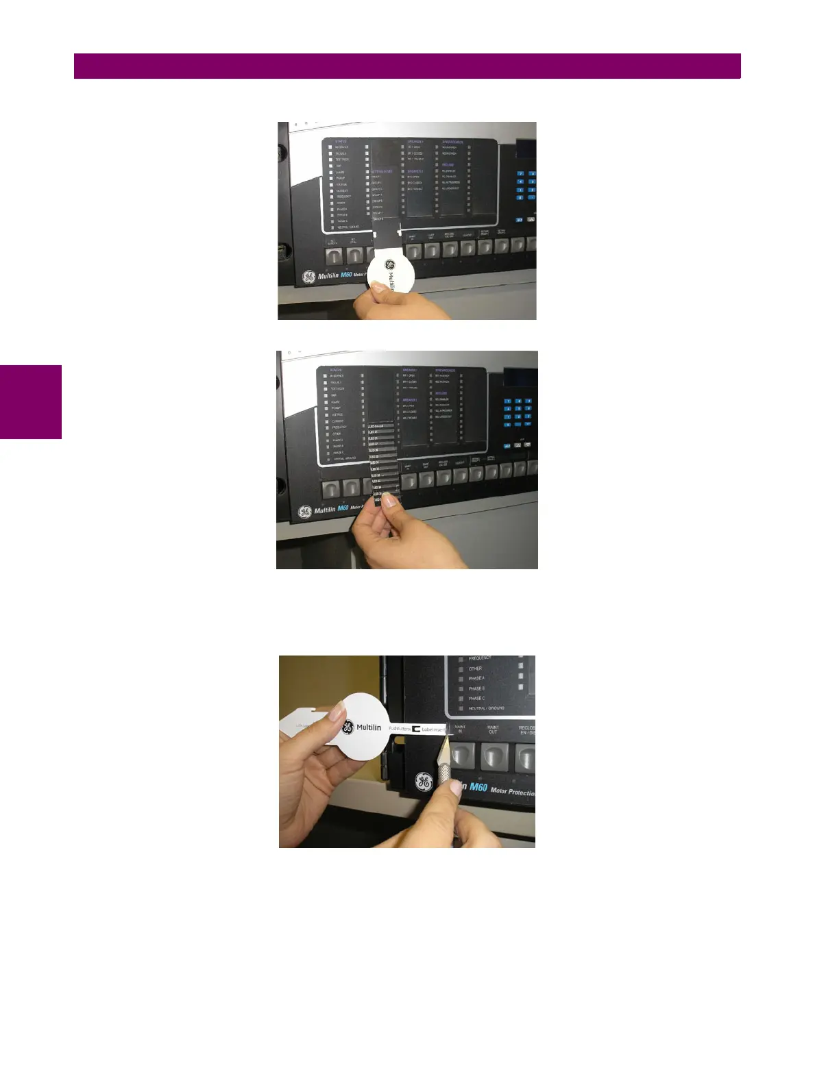 The following procedure describes how to remove the user-programmable pushbutton labels from the G30 enhanced front