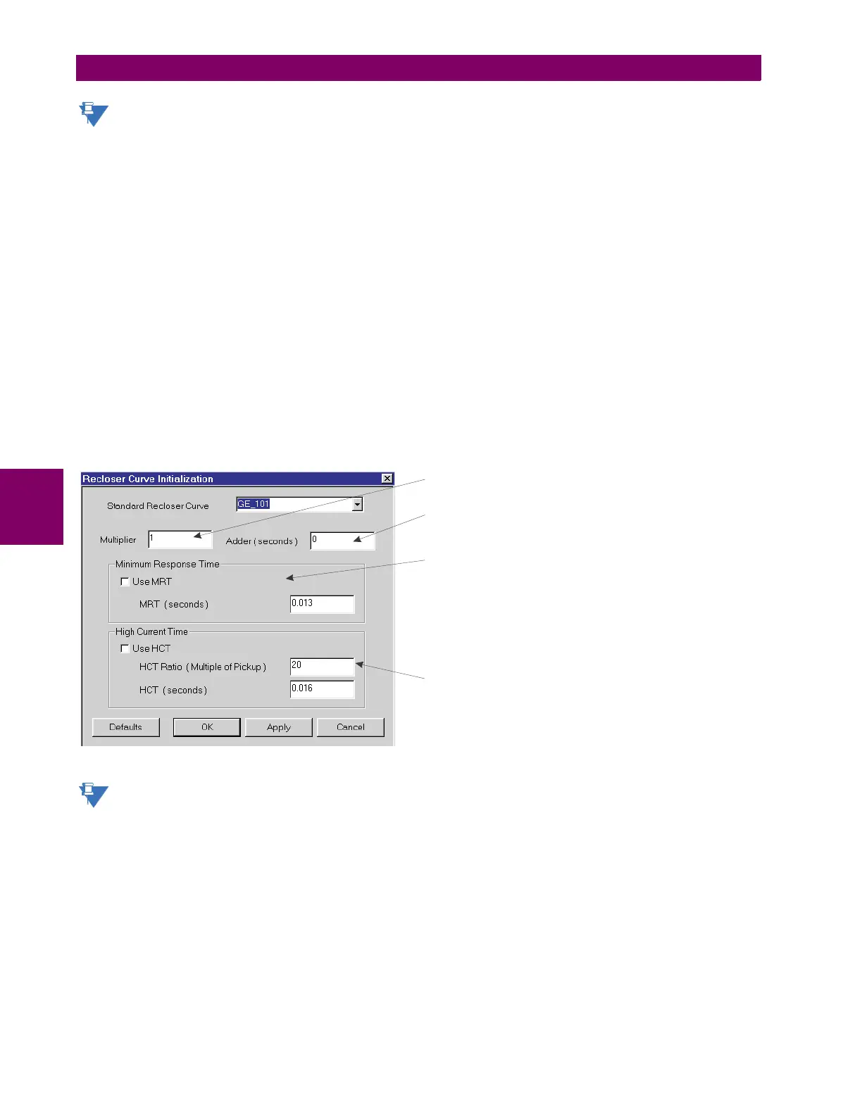 Figure 5–32: RECLOSER CURVE INITIALIZATION