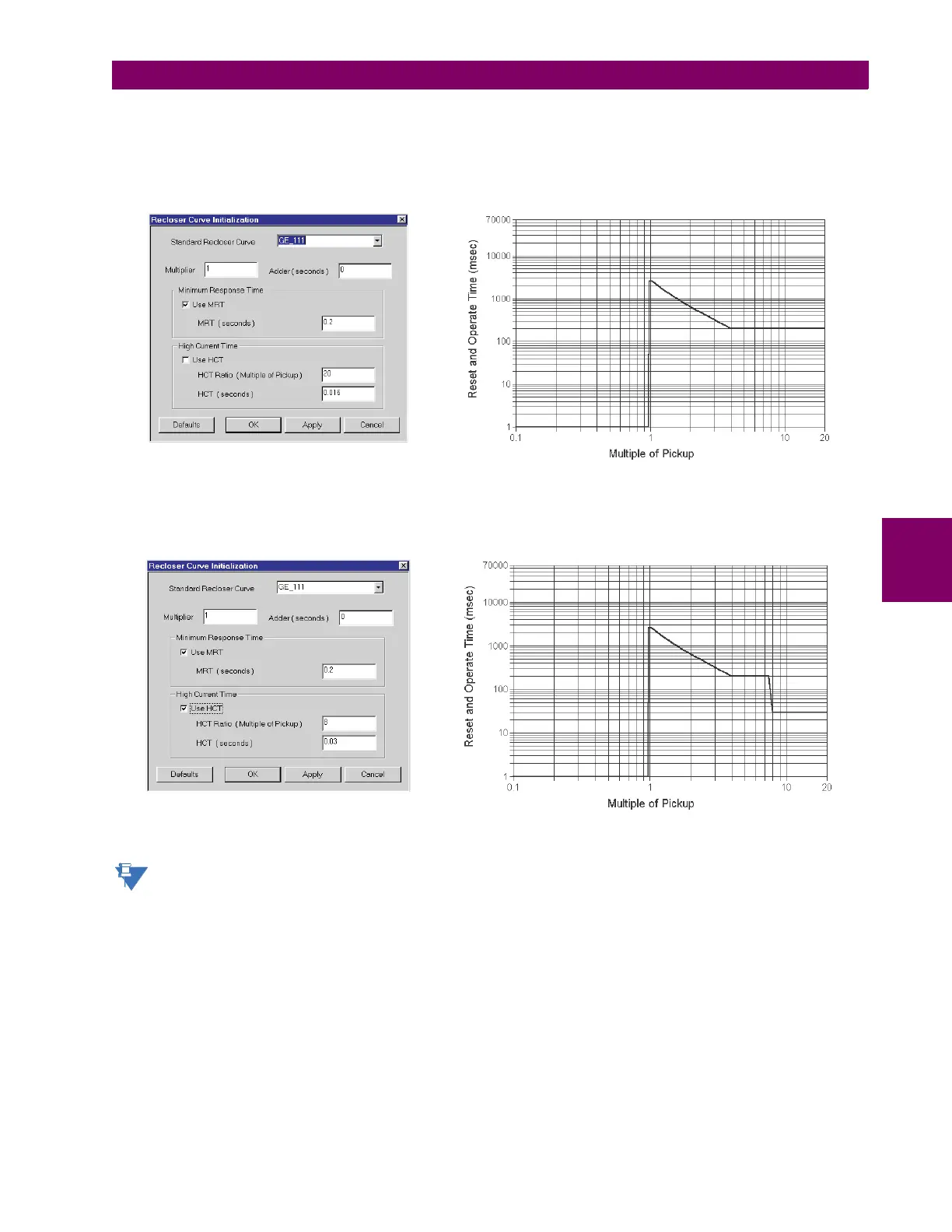 enabled at eight (8) times pickup with an operating time of 30 ms. At approximately four (4) times pickup, the curve operat-