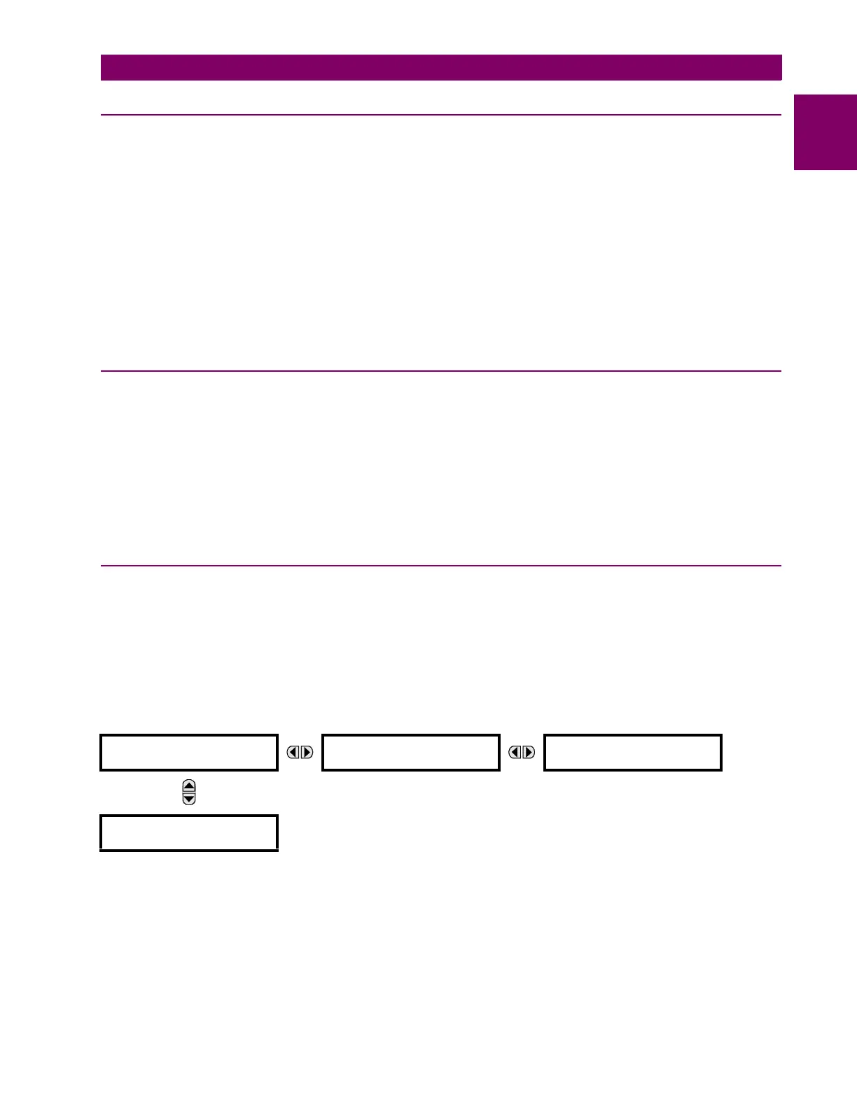 header display page menu item. Each press of the MENU key advances through the following main heading pages: