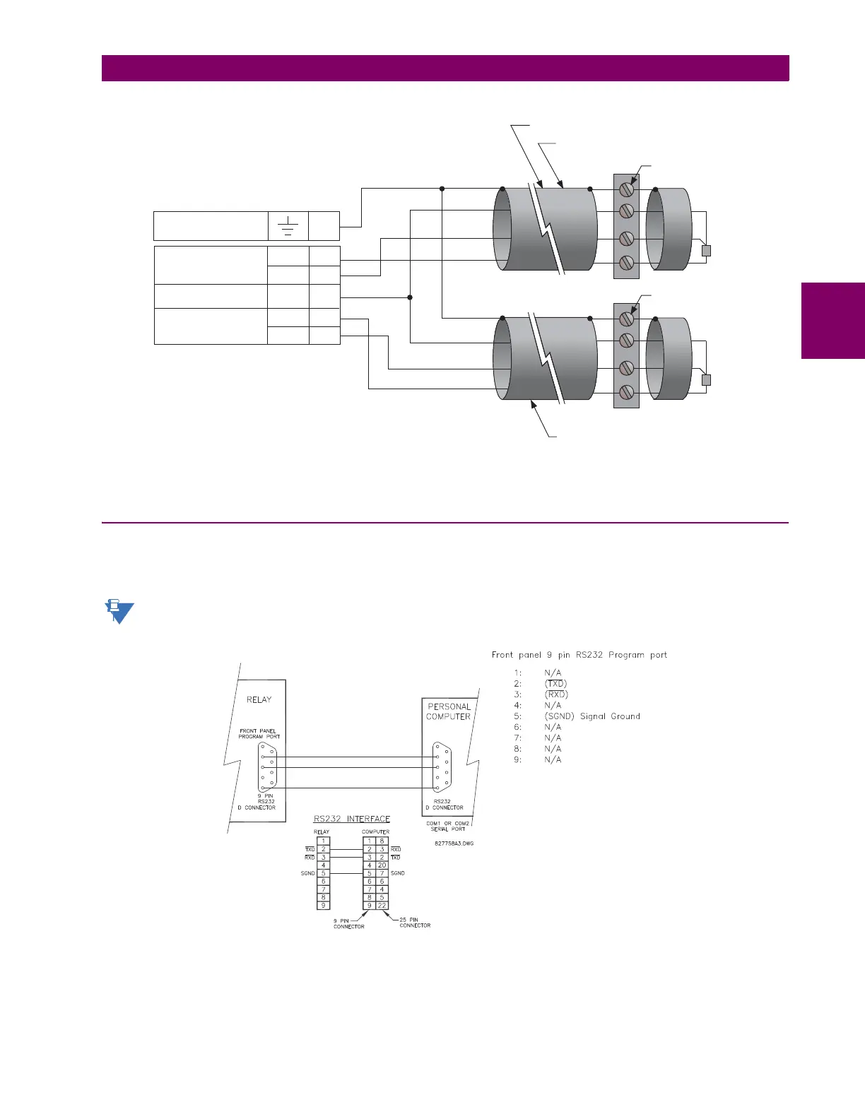 interface is a computer running the EnerVista UR Setup software provided with the relay. Cabling for the RS232 port is
