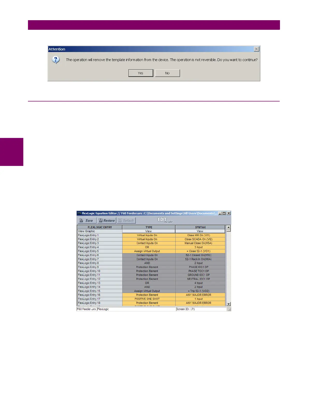 The UR allows users to secure parts or all of a FlexLogic equation, preventing unauthorized viewing or modification of criti-