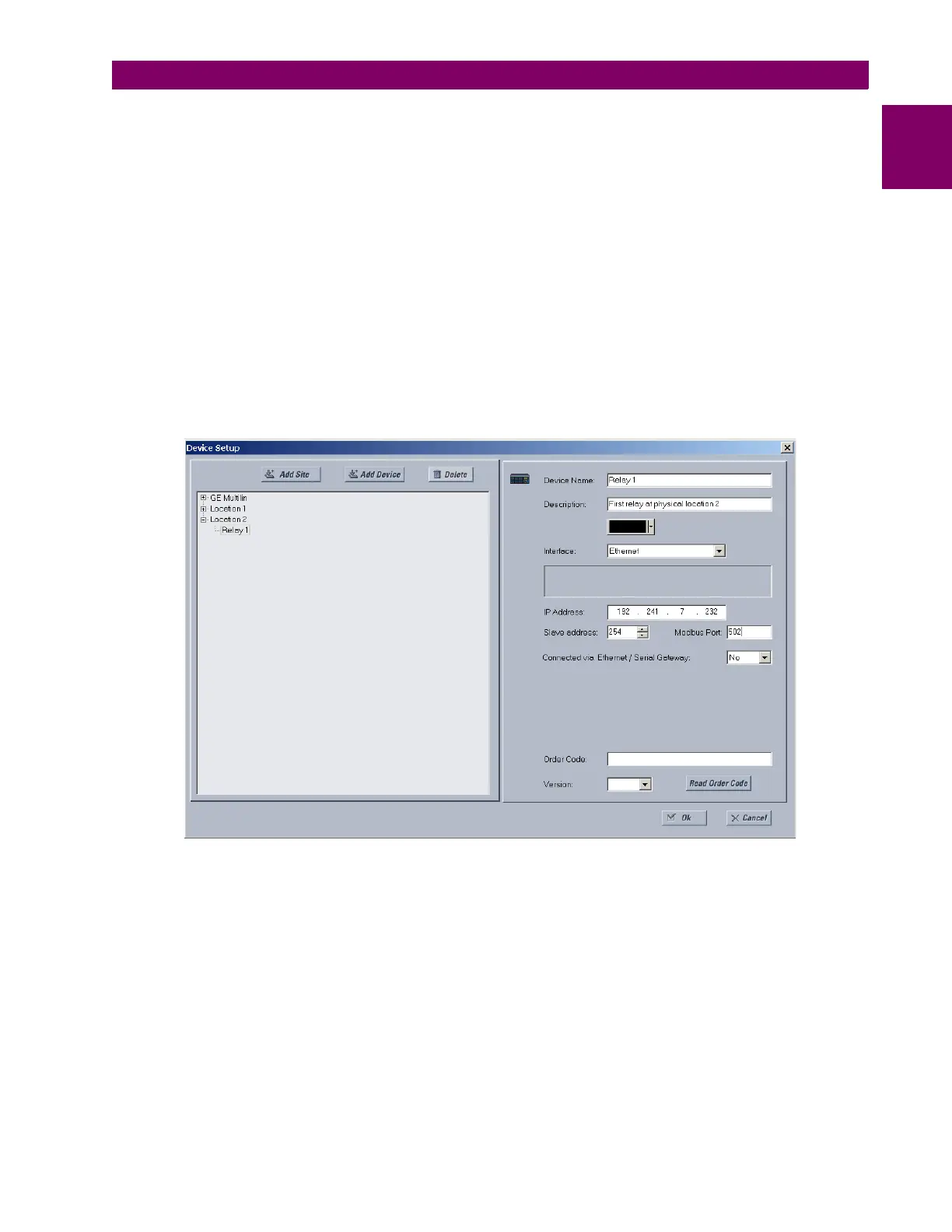 setup the relay for Ethernet communications, you define a Site, then add the relay as a Device at that site.The computer