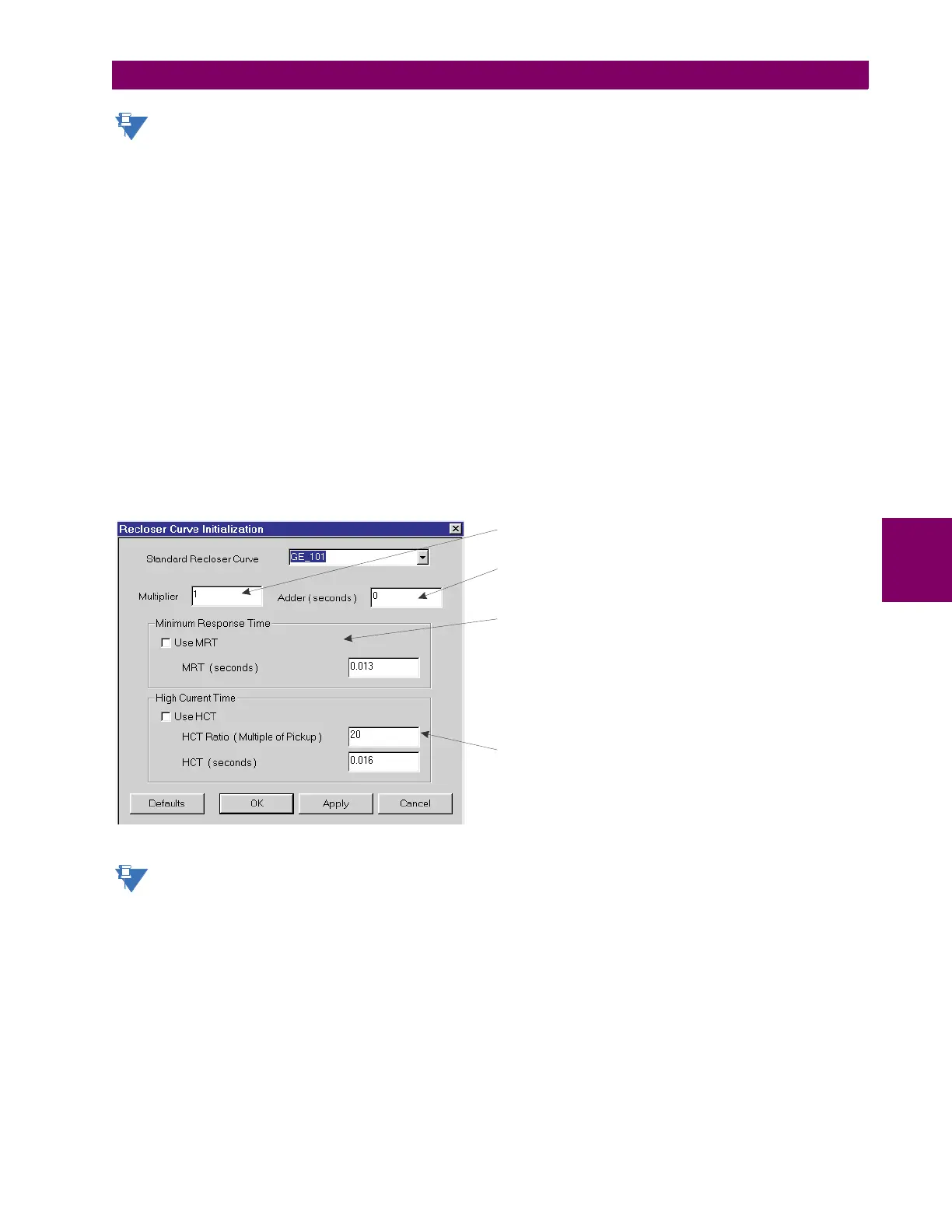Figure 5–29: RECLOSER CURVE INITIALIZATION