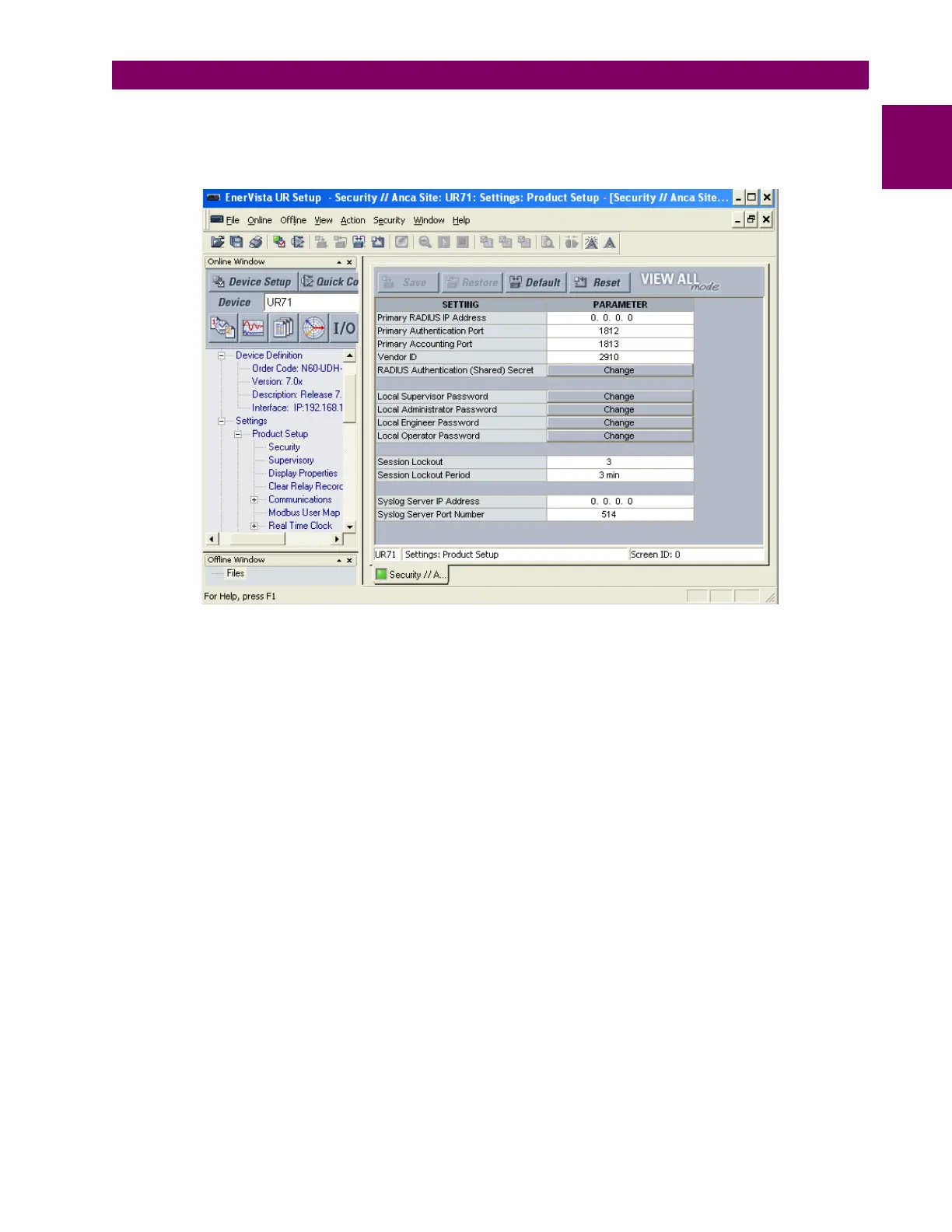 If using EnerVista, navigate to Settings > Product Setup > Security. Change the Local Administrator Password, for