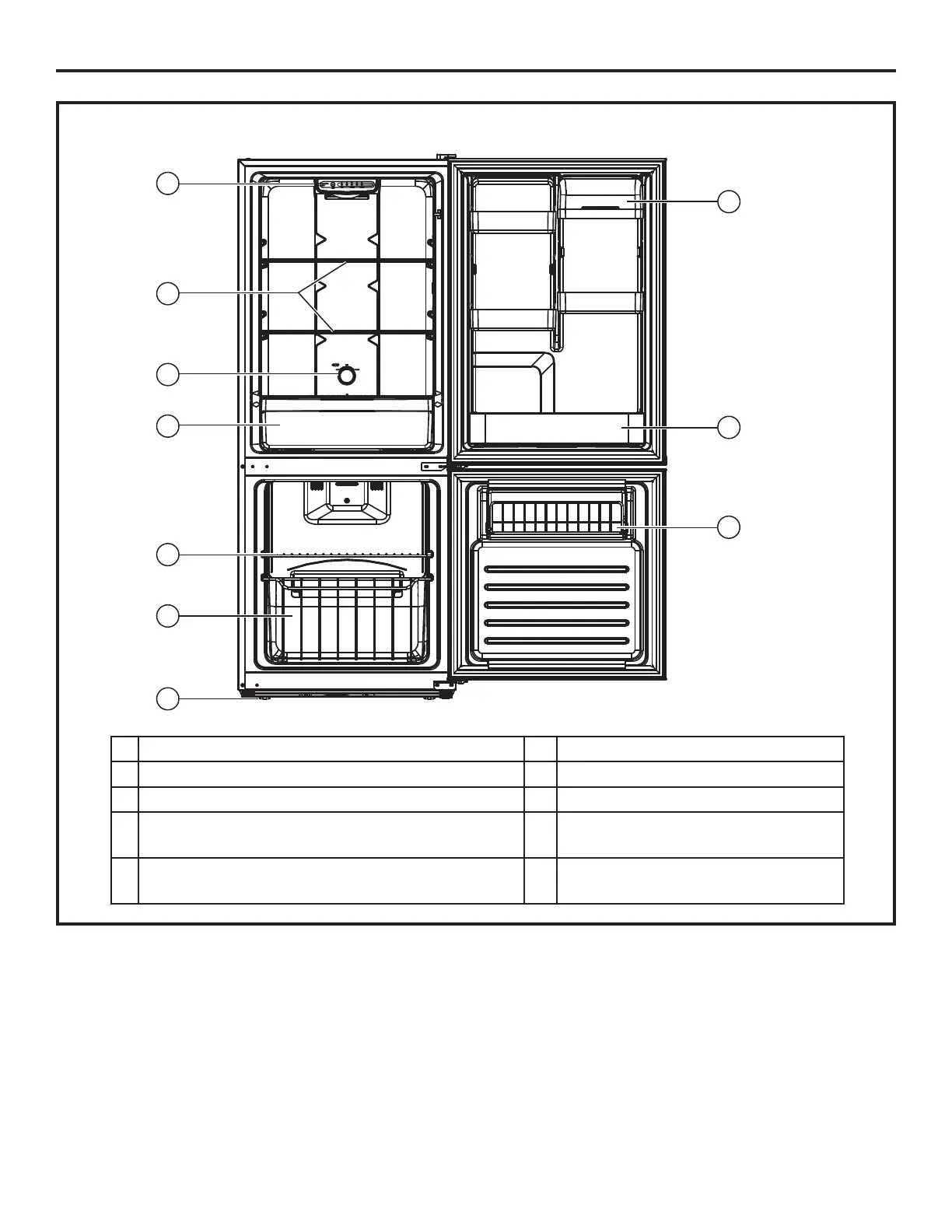 5 Tablette du congélateur 10 Porte du congélateur avec espace de