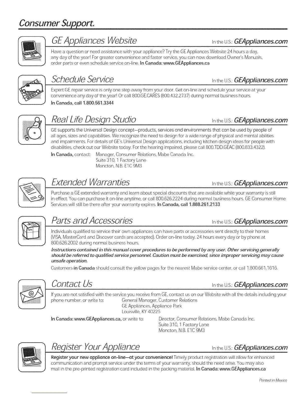 order parts or even schedule service on-line. In Canada: www.GEAppliances.ca