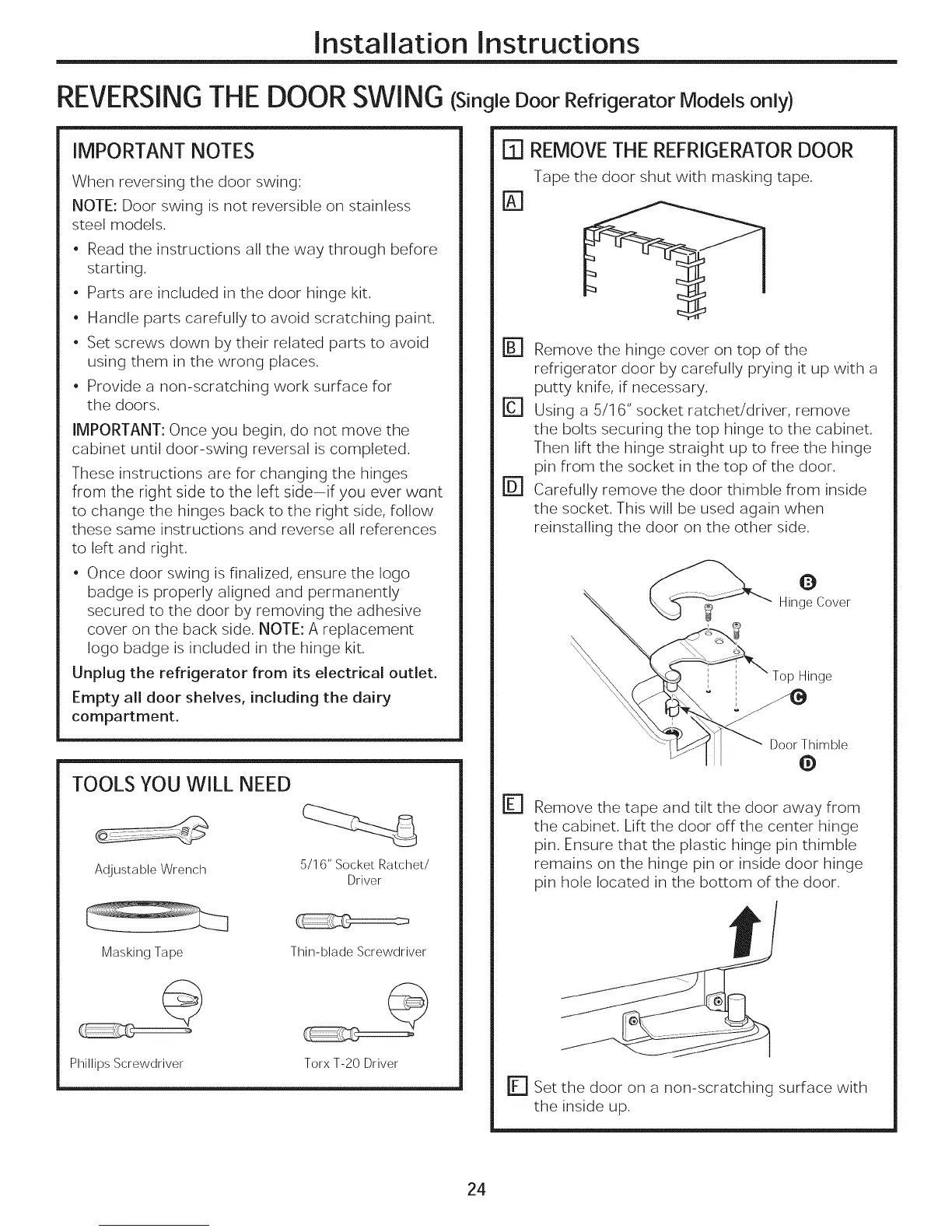 REVERSINGTHEDOORSWING(Single Door Refrigerator Models only)