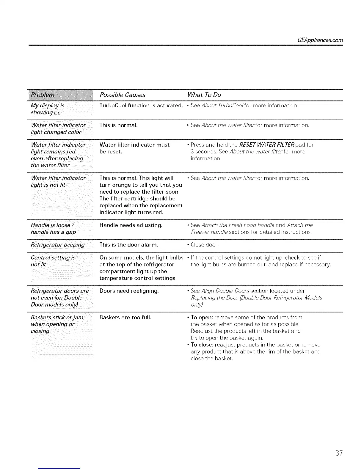 Handle is loose / Handle needs adjusting. . See Attach the Fresh Food handle and Attach the