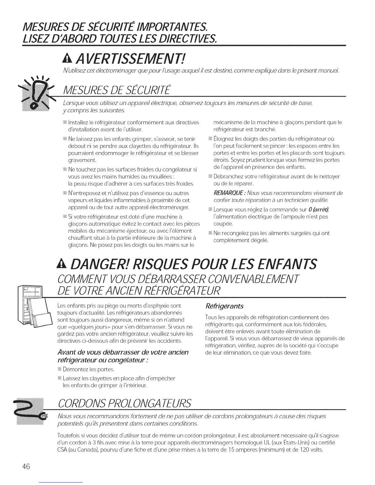 debout ni se pendre aux clayettes du refrigerateur. IIs