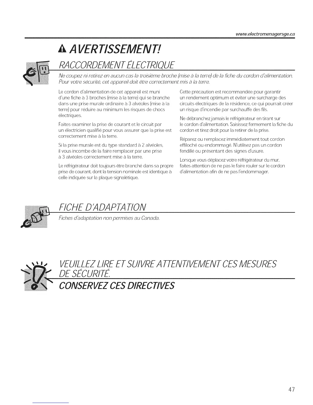 He coupez ni retirez en aucun cas /a troisierne broche (raise a/a terre) de/a fiche du cordon db/imentation.