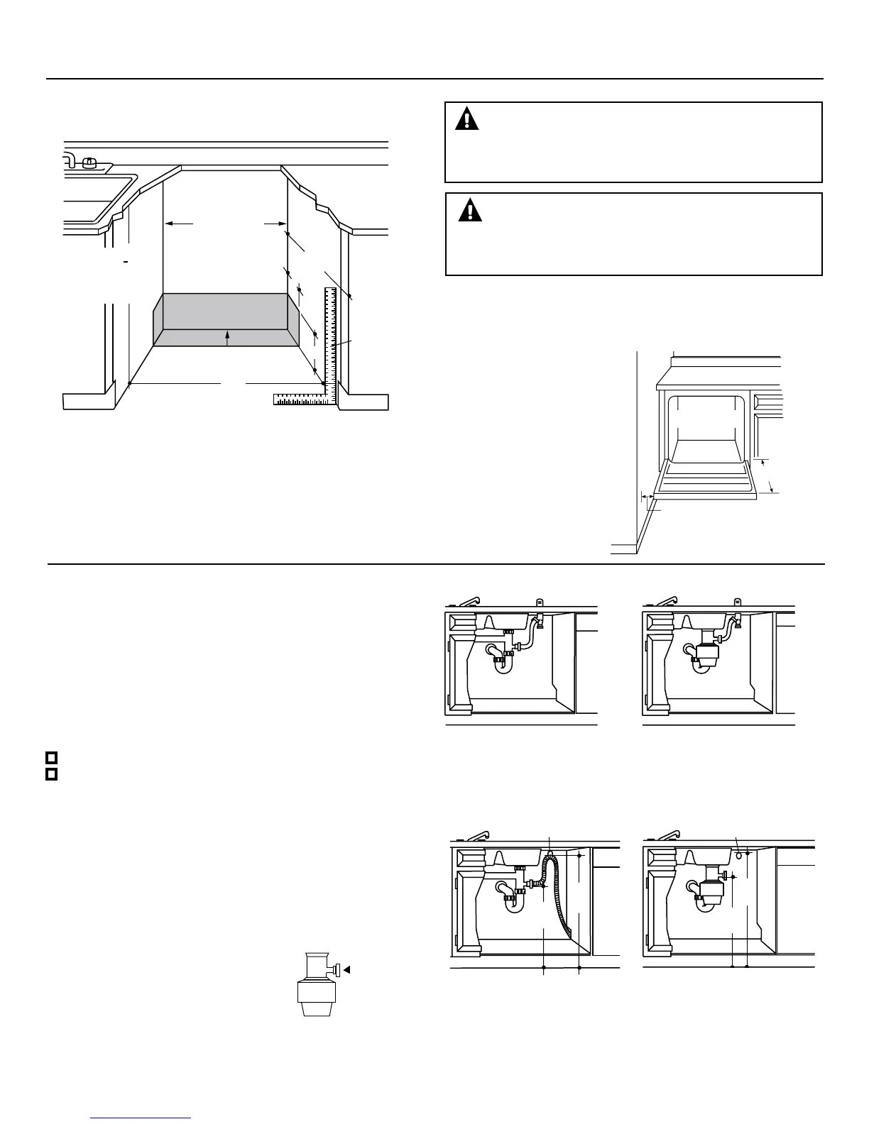 • Drill a 1-1/2" diameter hole in the cabinet wall within