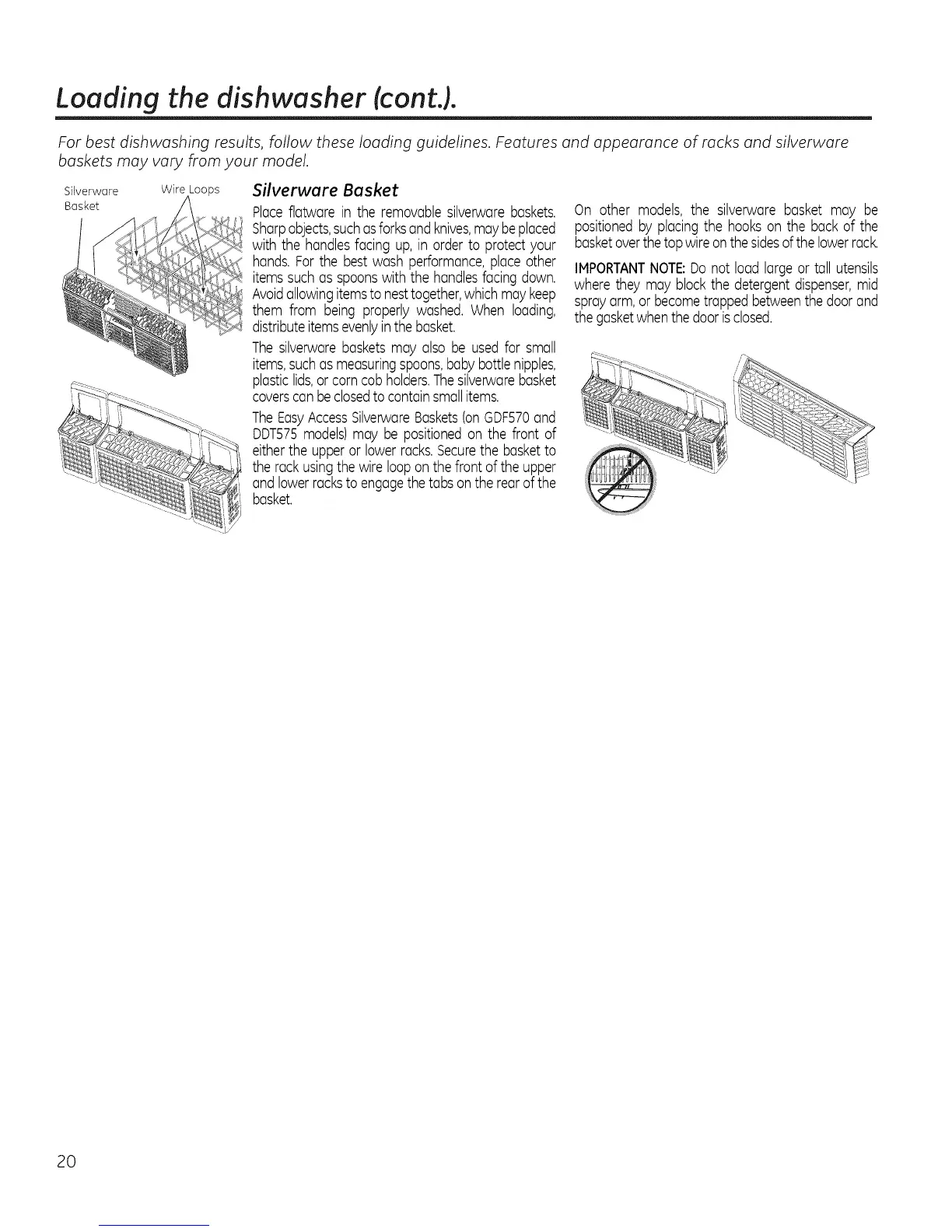 IMPORTANTNOTE:Do not load largeor tall utensils