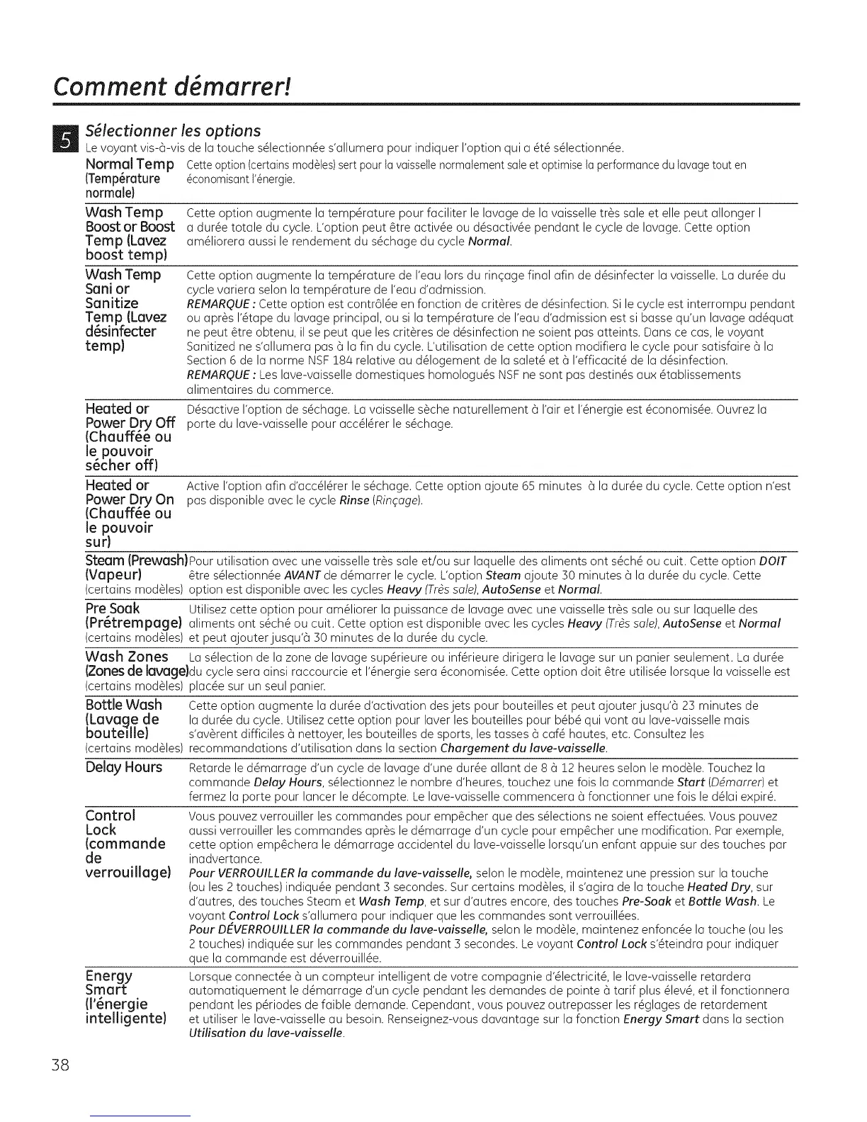 d'autres, des touches Steam et Wash Temp, et sur d'autres encore, des touches Pre-Soak et Bottle Wash. Le