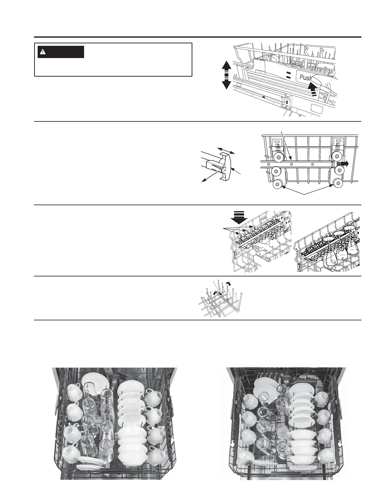 accommodate larger items. To adjust the upper rack, fully