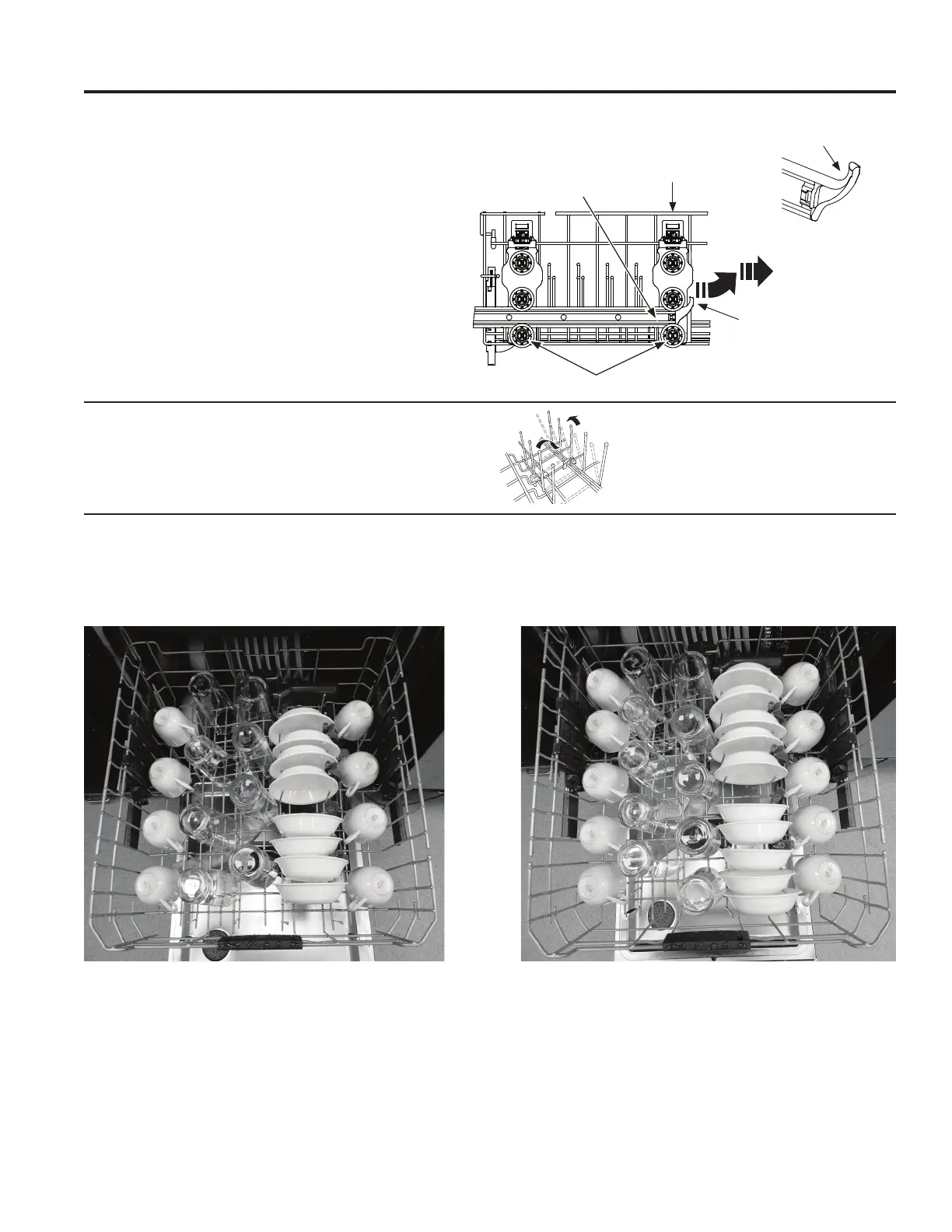 Pour ajuster le panier supérieur, tirez-le jusqu’au bout