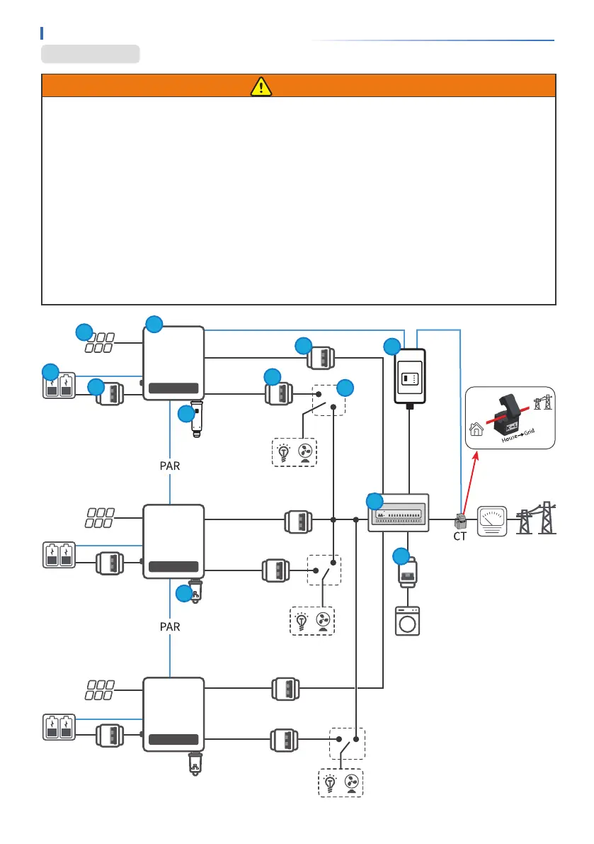 • O-grid parallel system is not supported. Do not parallel connect the back-up ports of the