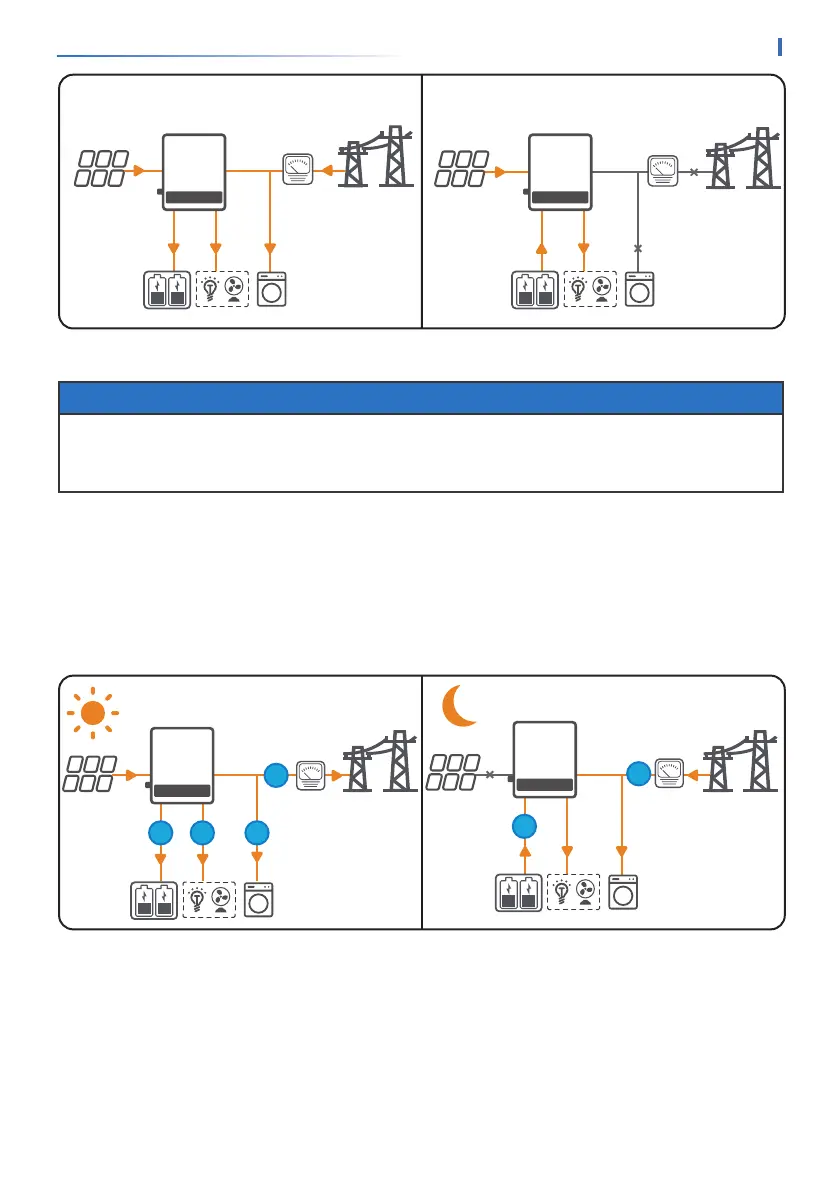 • Night: If the battery power is sucient, the load will be powered by the battery. If the battery power