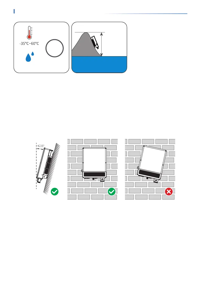 • Install the inverter vertically or at a maximum back tilt of 15 degrees.