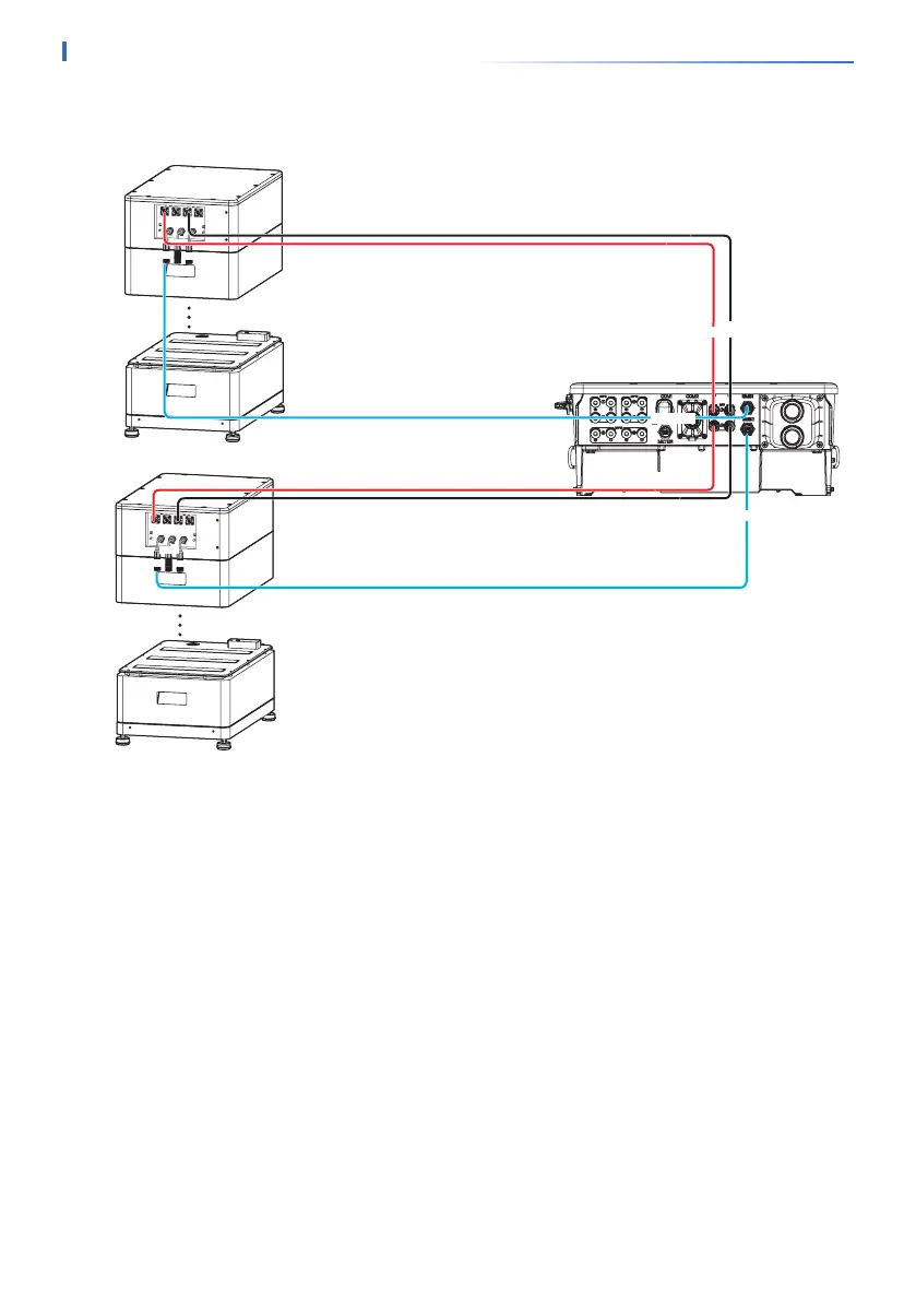 When connecting two single battery systems to BAT2+/- ports of the inverter, the BMS