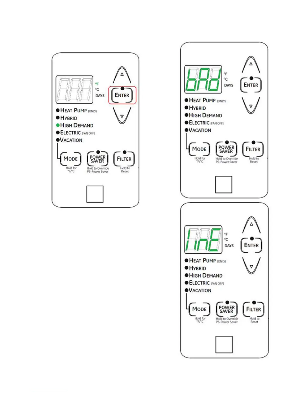 DEMAND lit. Press and hold the ENTER button for 5