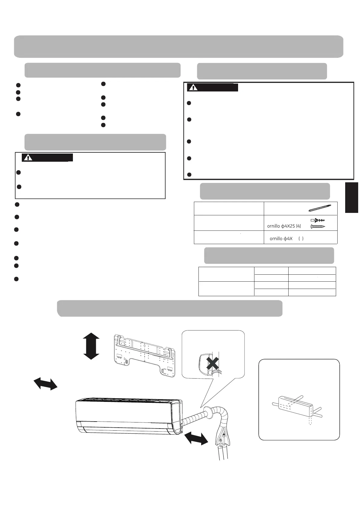 La distancia entre la unidad interior y el suelo debe ser superior a 2m.