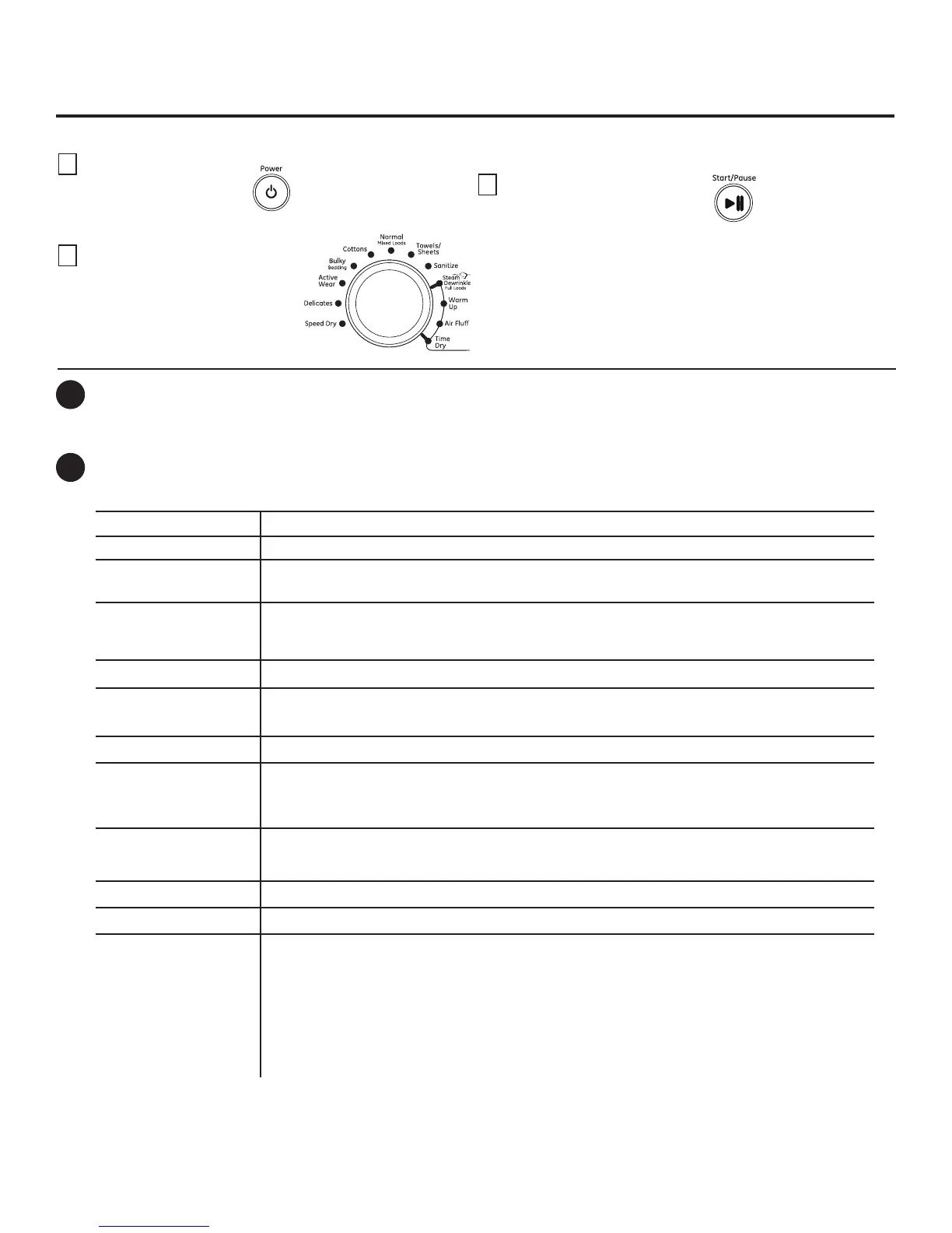The dry cycle controls the length and tumble speed of the drying process. The chart below will help you match the dry