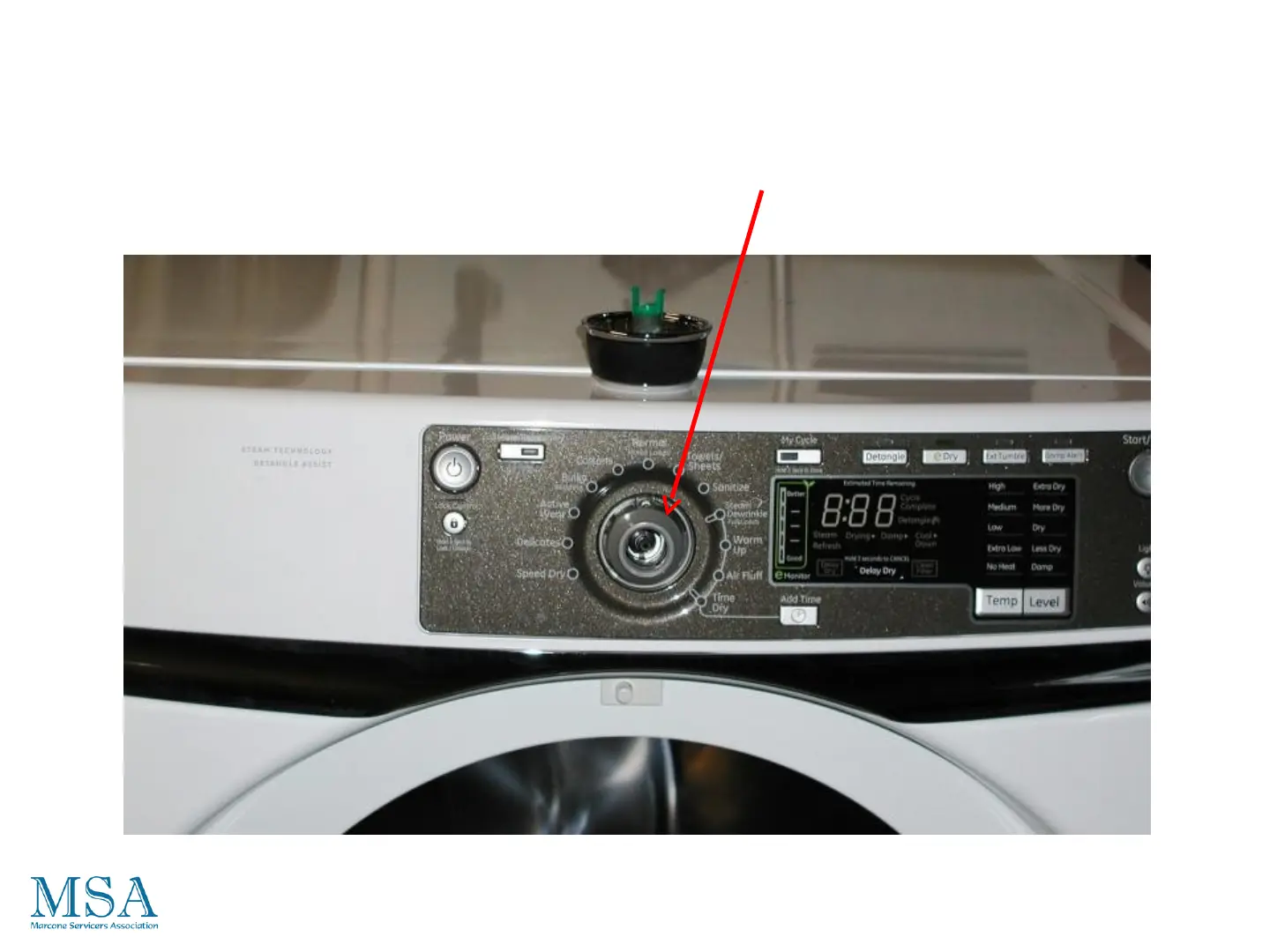 Remove the cycle selector knob retainer by pulling it forward.