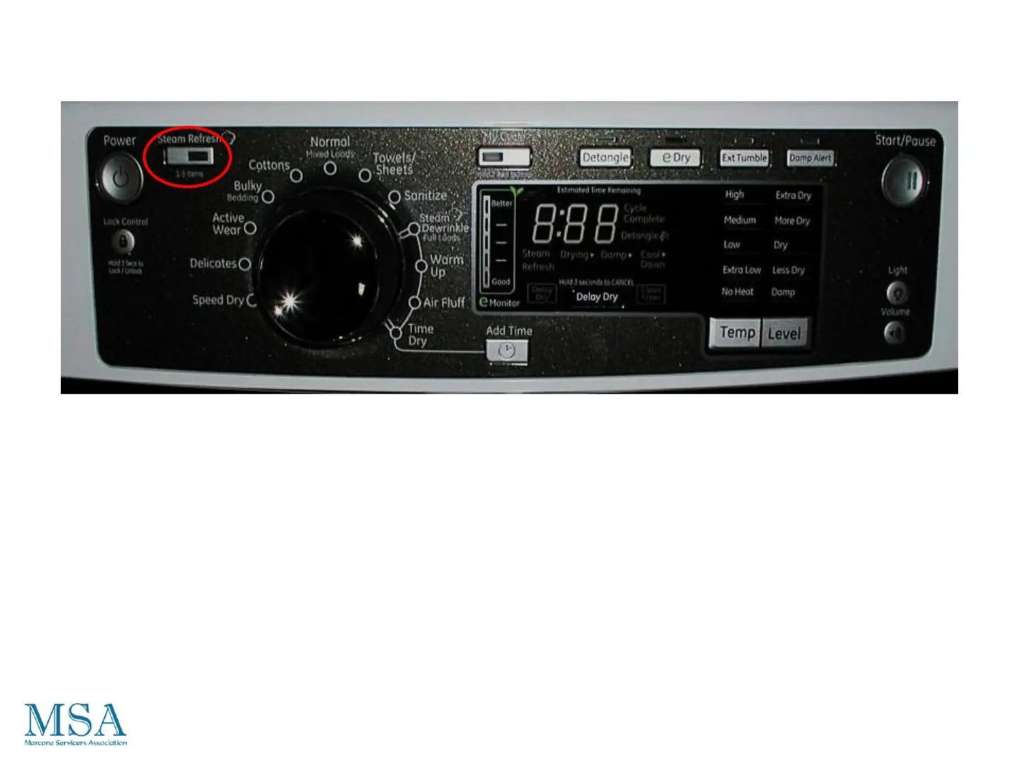 Steam Dewrinkle - Used for loads left in the dryer for an extended period of time.