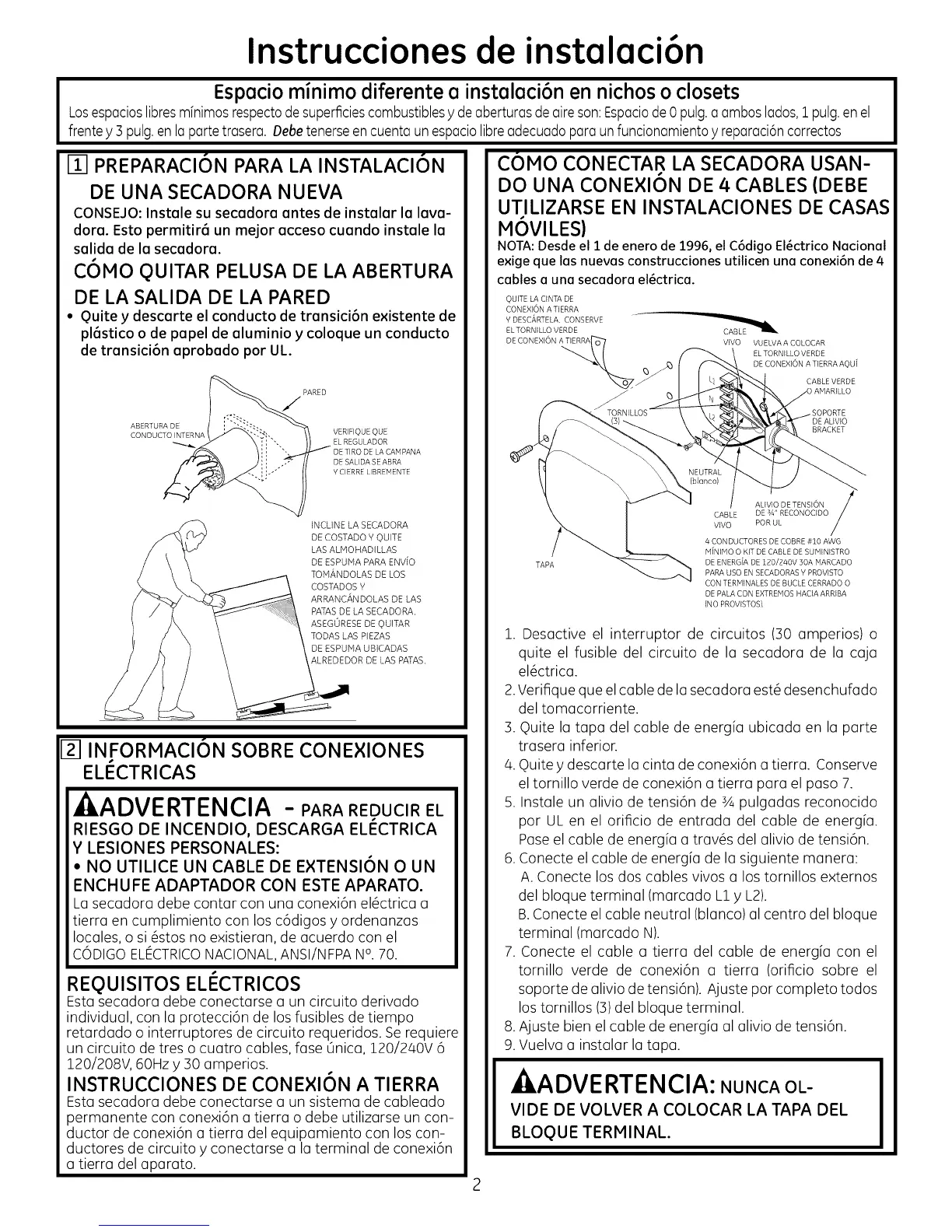 Losespacioslibresm[nimosrespectodesuperficiescombustiblesy deaberturasde aireson:Espaciode0 pulg.a amboslados,1 pulg.enel