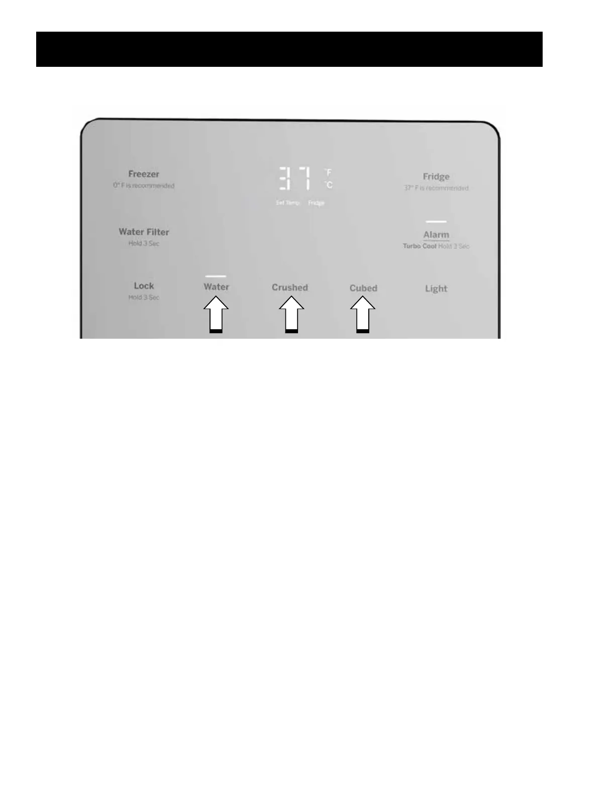 To enter Service Mode, press and hold "Water", "Crushed", and "Cubed" pads simultaneously for 3