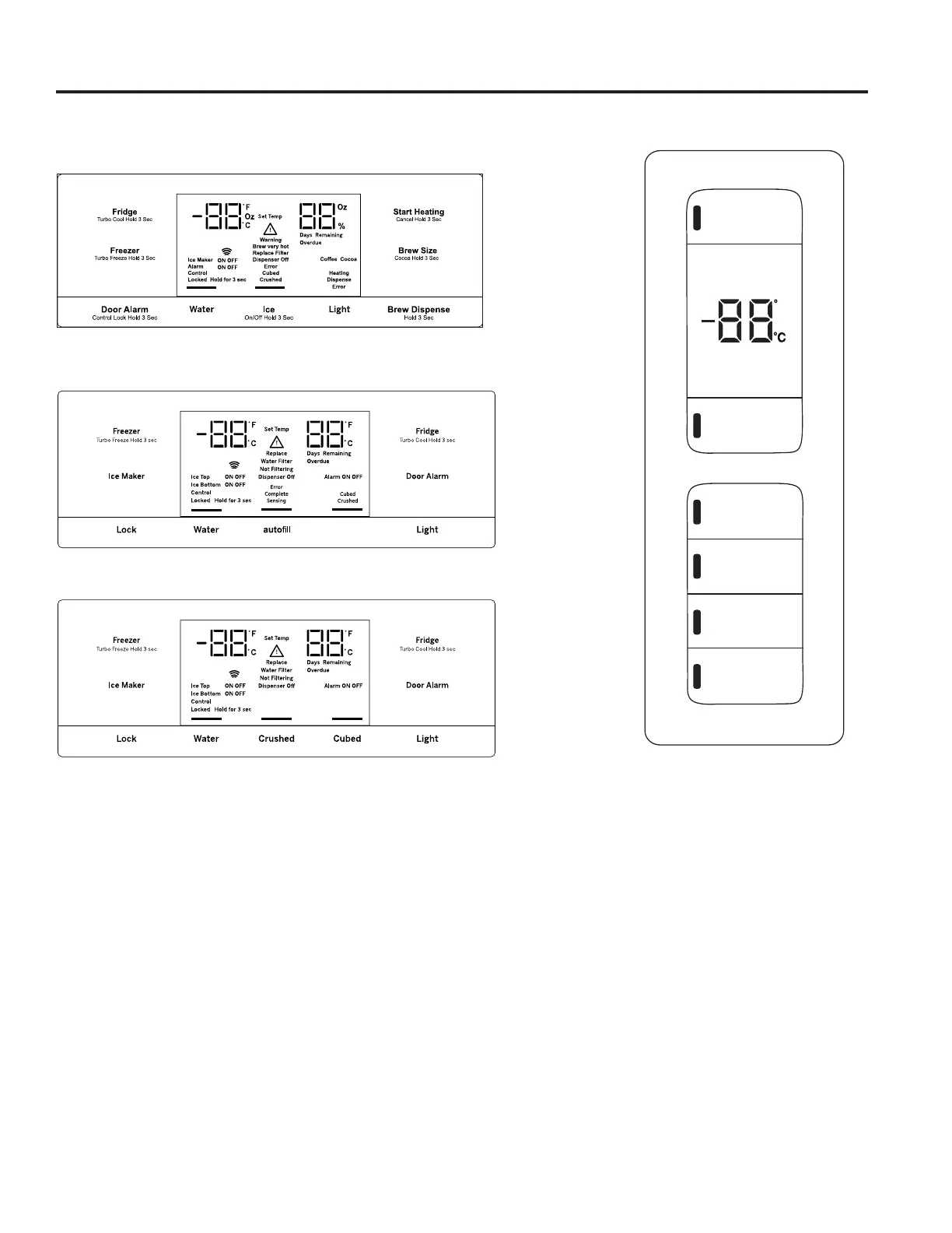 Style de contrôle D : Les commandes de températures peuvent afficher les températures SET (fixées) ainsi que les