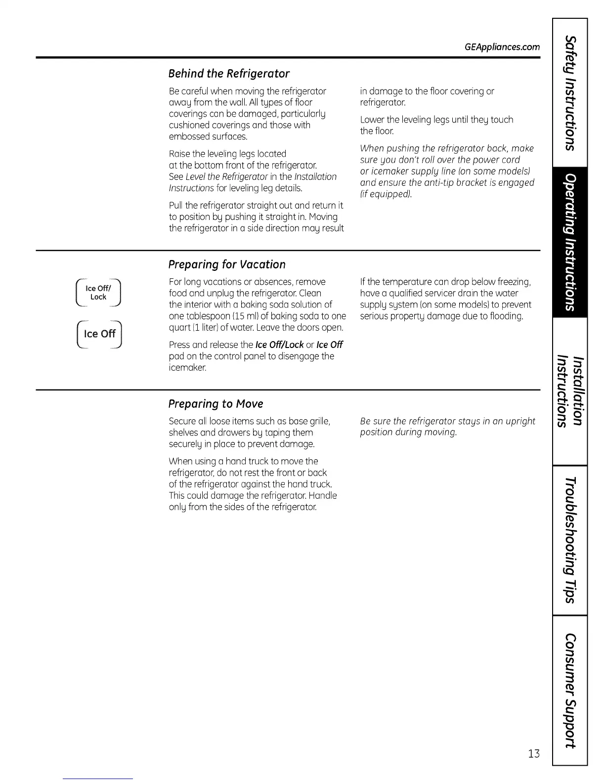 refrigerator,do not rest the front or back