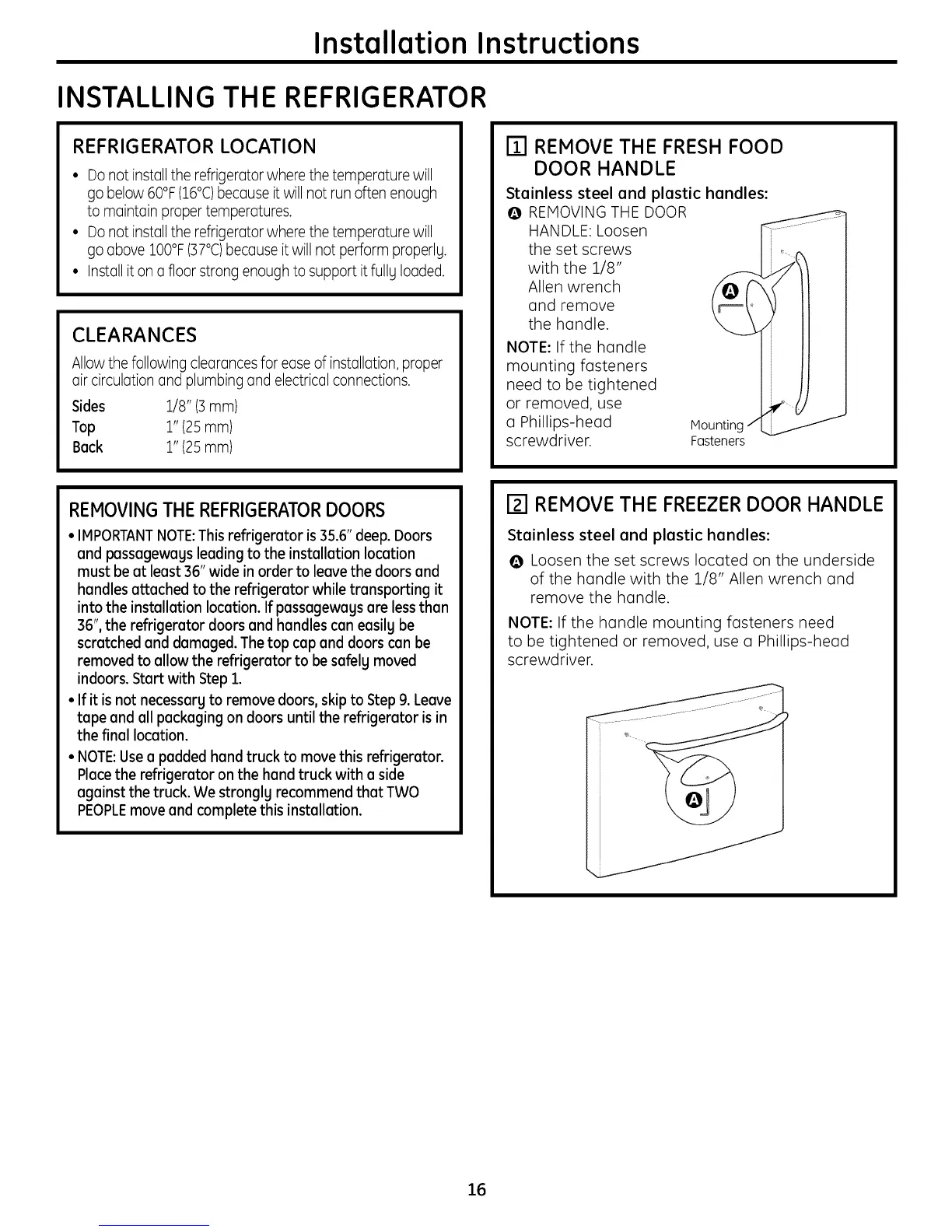 • NOTE:Usea padded hand truck to move this refrigerator.