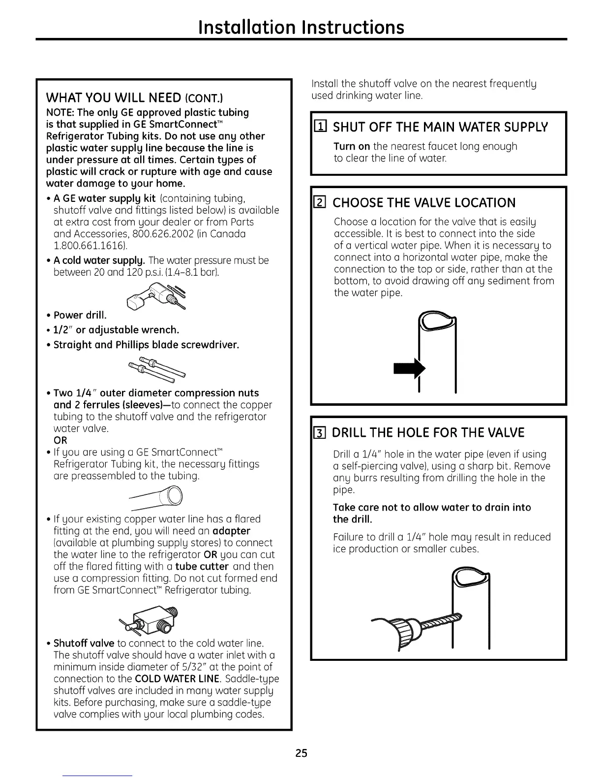 NOTE: The only GE approved plastic tubing