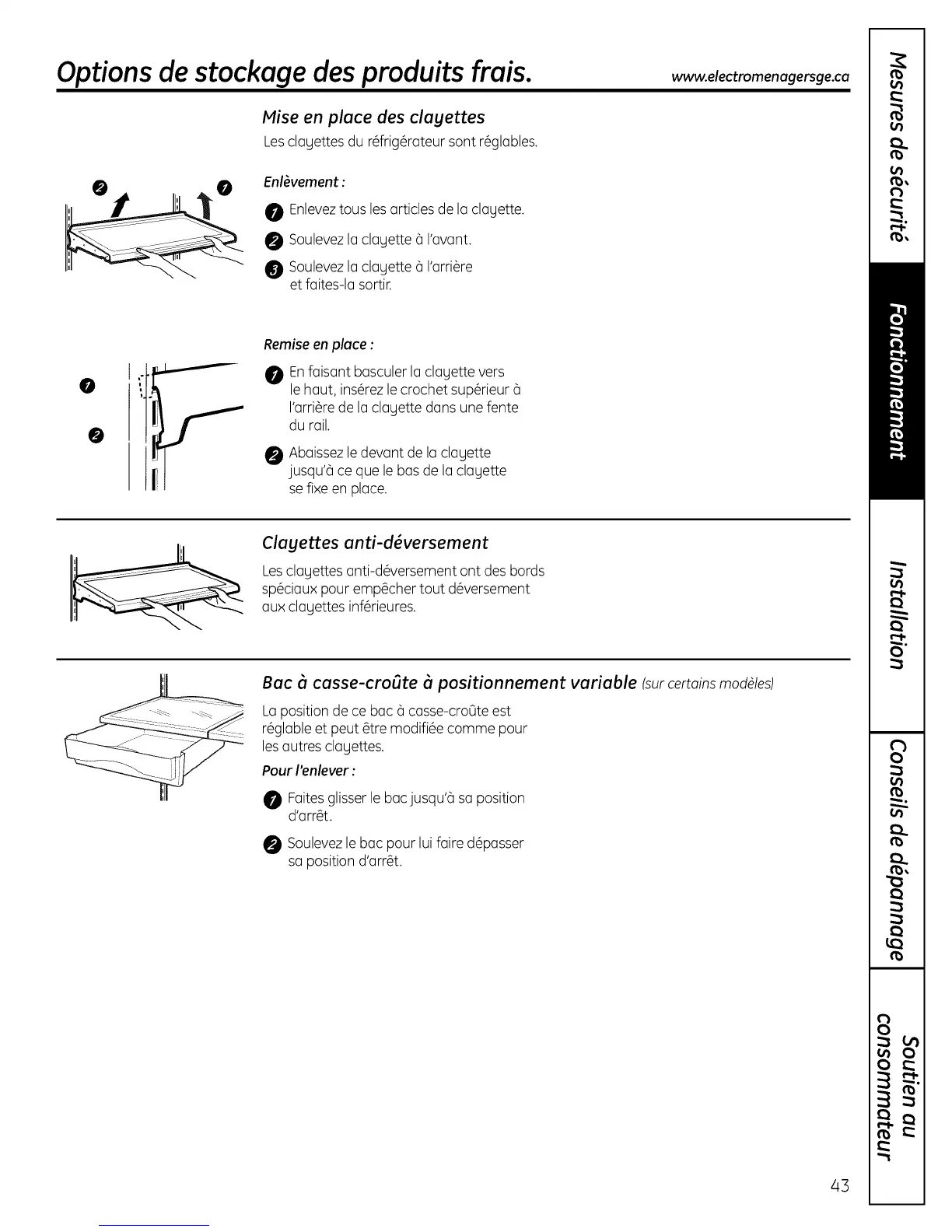Bac _ casse-cro_te _ positionnement variable (sur certainsmodules)